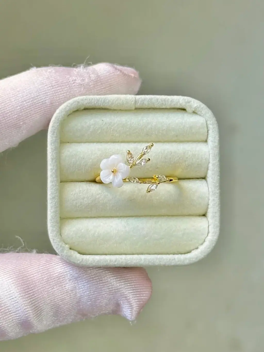 Hayatınıza zarif bir dokunuş katmaya hazır mısınız? Gleam markasının muhteşem tasarımıyla karşınızdayız: Beyaz Sedef Çiçekli Altın Kadın Yüzüğü!