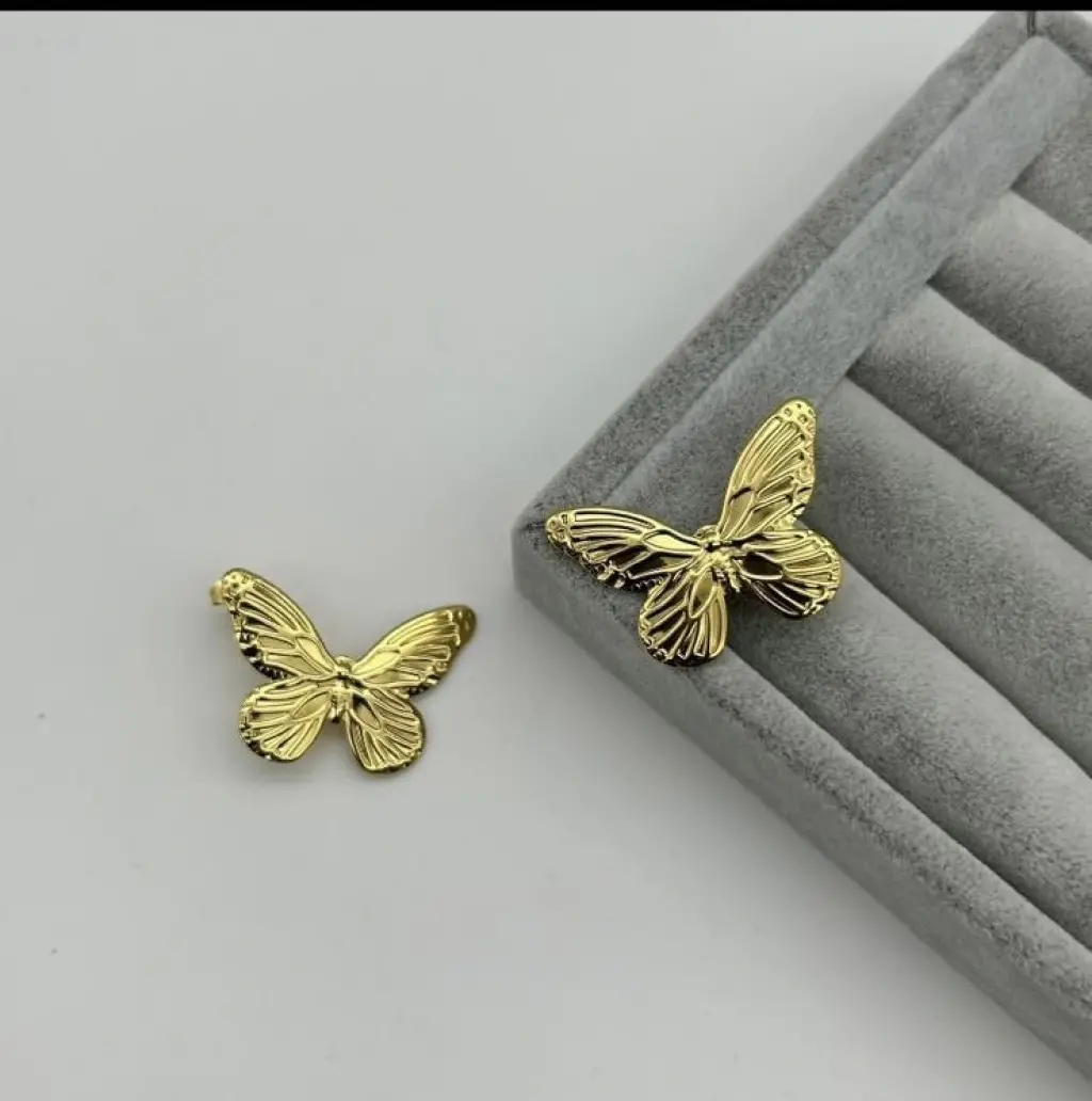Zarafetin en estetik sembollerinden biri olan kelebekten ilham alınarak tasarlanan Büyük Gold Kelebek Model Çelik Kadın Küpe, romantik ve feminen stilin güçlü bir yansımasıdır. Detaylı kanat dokusu ve heykelsi formuyla dikkat çeken bu tasarım, kulağa takıldığında 3 boyutlu bir görünüm oluşturur ve sade şıklığıyla güçlü bir aksesuar etkisi yaratır. Gold rengin modern ve zamansız ışıltısı sayesinde hem günlük stilinize hem de özel kombinlerinize zarif bir dokunuş katar.