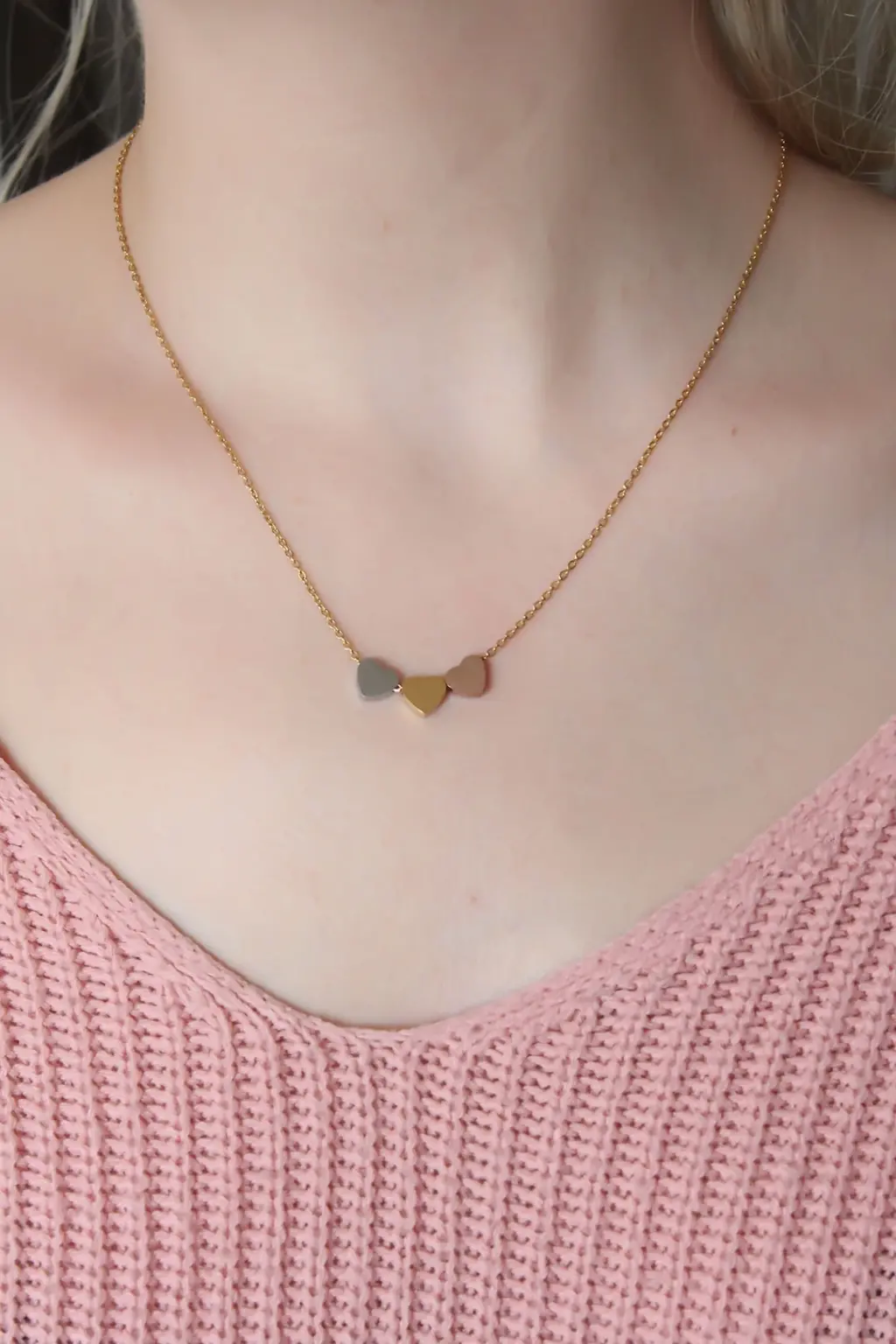 Çelik 3 Renkli Minimal 3lü Kalp Kolye Zarif detaylarla, göz alıcı tasarımlarla bezenmiş özel tasarım