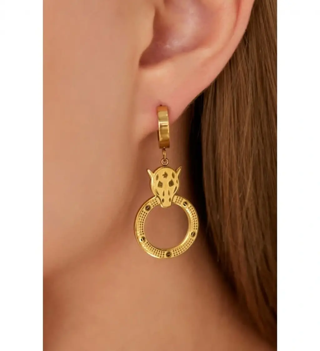 Stil sahibi kadınların favorisi olmaya aday bu panter detaylı halka küpe, günlük kullanımda da özel kombinlerde de güçlü bir tamamlayıcı aksesuar olarak öne çıkar. Modern, sıra dışı ve çekici bir görünüme sahip olmak isteyenler için mükemmel bir seçim. ?