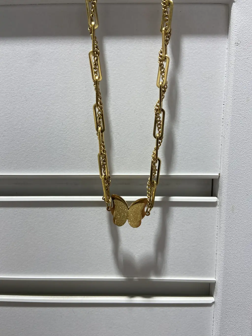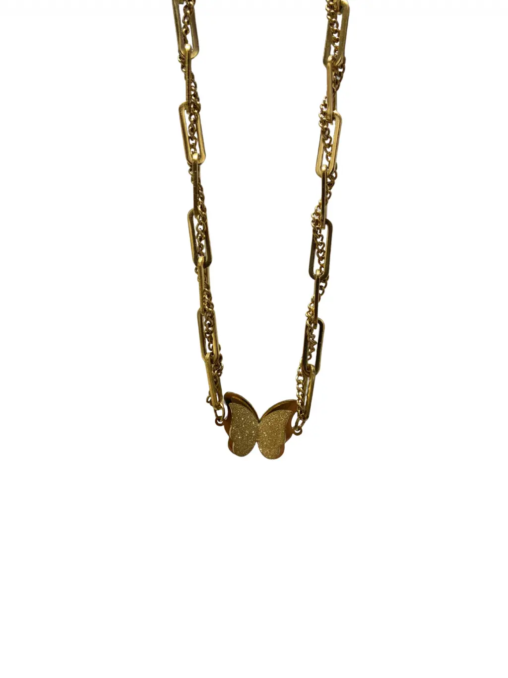 Bu muhteşem Çift 2 Zincirli Gold Renk Taşsız Kelebek Motifli Kolye ile tarzınızı tamamlayın.