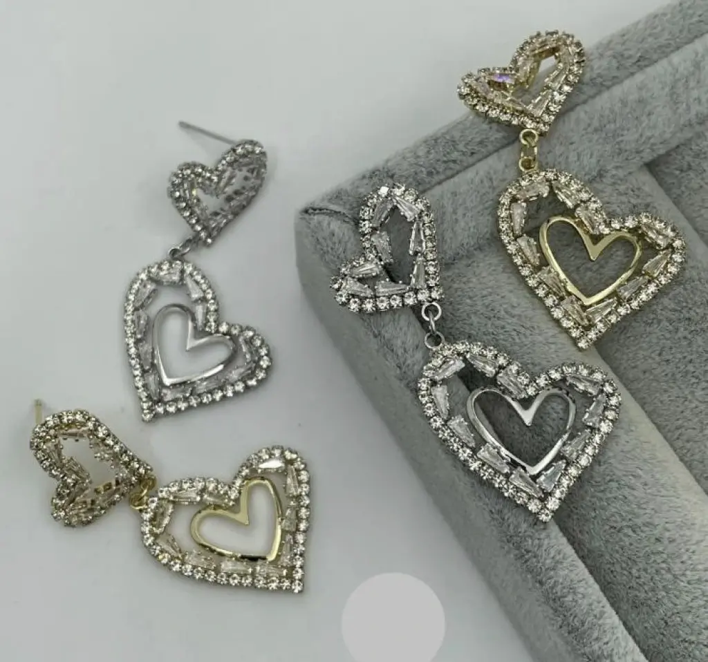 Gold ve silver renk seçeneklerine sahip olan Çift Kalp Sallantılı Taşlı Abiye Küpe, davetlerde, özel akşamlarda, nişan veya mezuniyet gibi şık etkinliklerde tercih edilebilecek kusursuz bir tamamlayıcıdır. Hafif yapısı sayesinde gün boyu veya gece boyunca rahatça kullanılabilir. Feminen stilinden ödün vermeyen, romantik ve gösterişli detayları seven herkes bu modelin tarzına kattığı ışıltıyı çok sevecek. Kalpten şıklık arayanlara özel bir seçim
