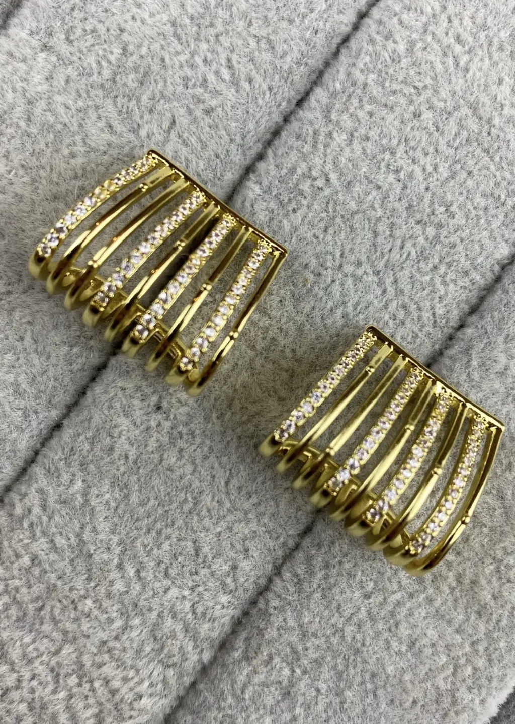 Bu şık ve göz alıcı Çoklu Görünümlü Büyük Taşlı Gold Kadın Küpe, stilinize zarif bir dokunuş katacak!