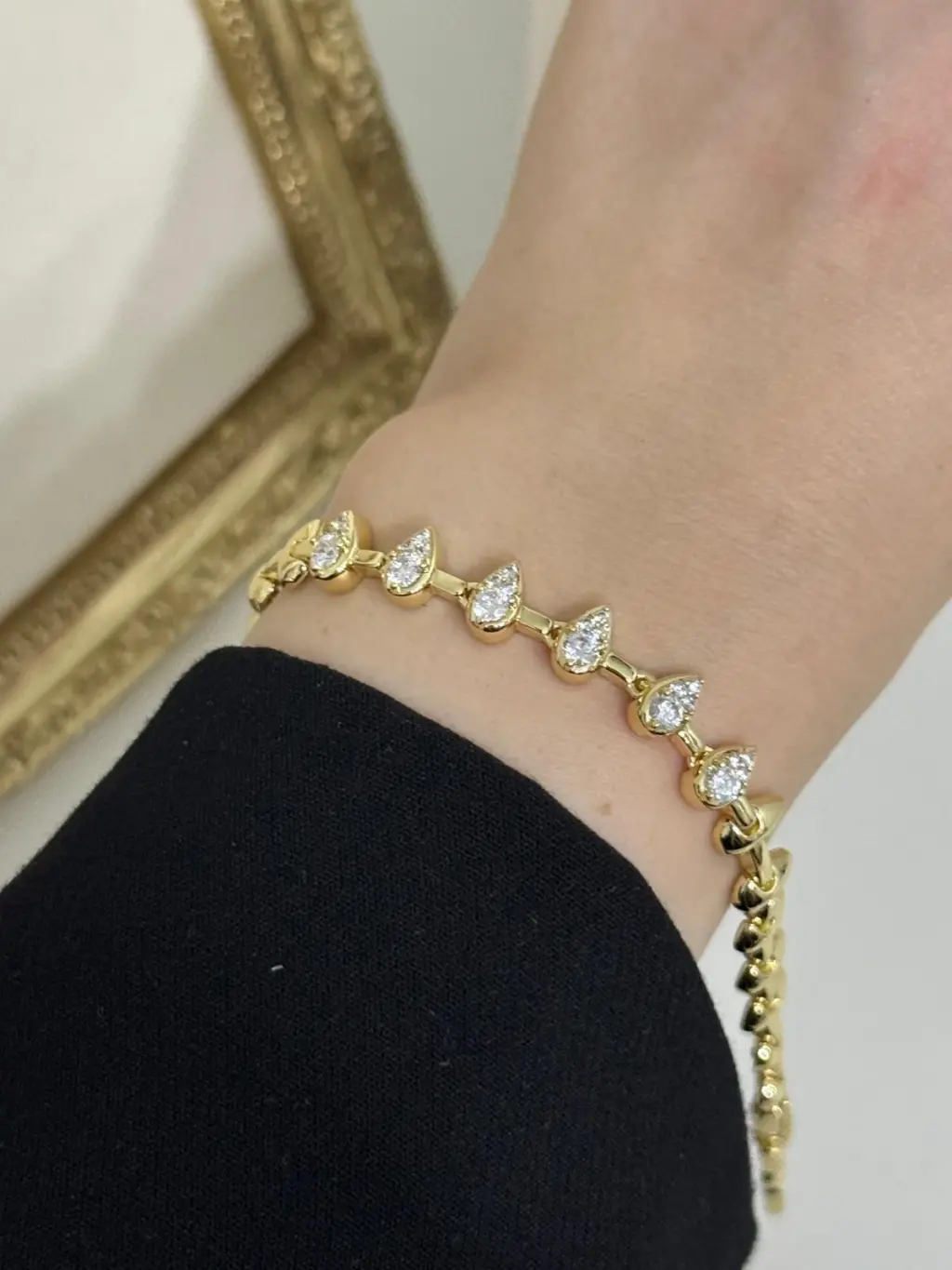 Şık ve zarif bir tasarıma sahip olan Damla Şeklinde Taşlı - Taşsız Abiyelik 14K Kaplama Çelik Kadın Bilekliği, özel günlerinizde veya günlük hayatta tarzınızı tamamlamak için ideal bir seçenektir.