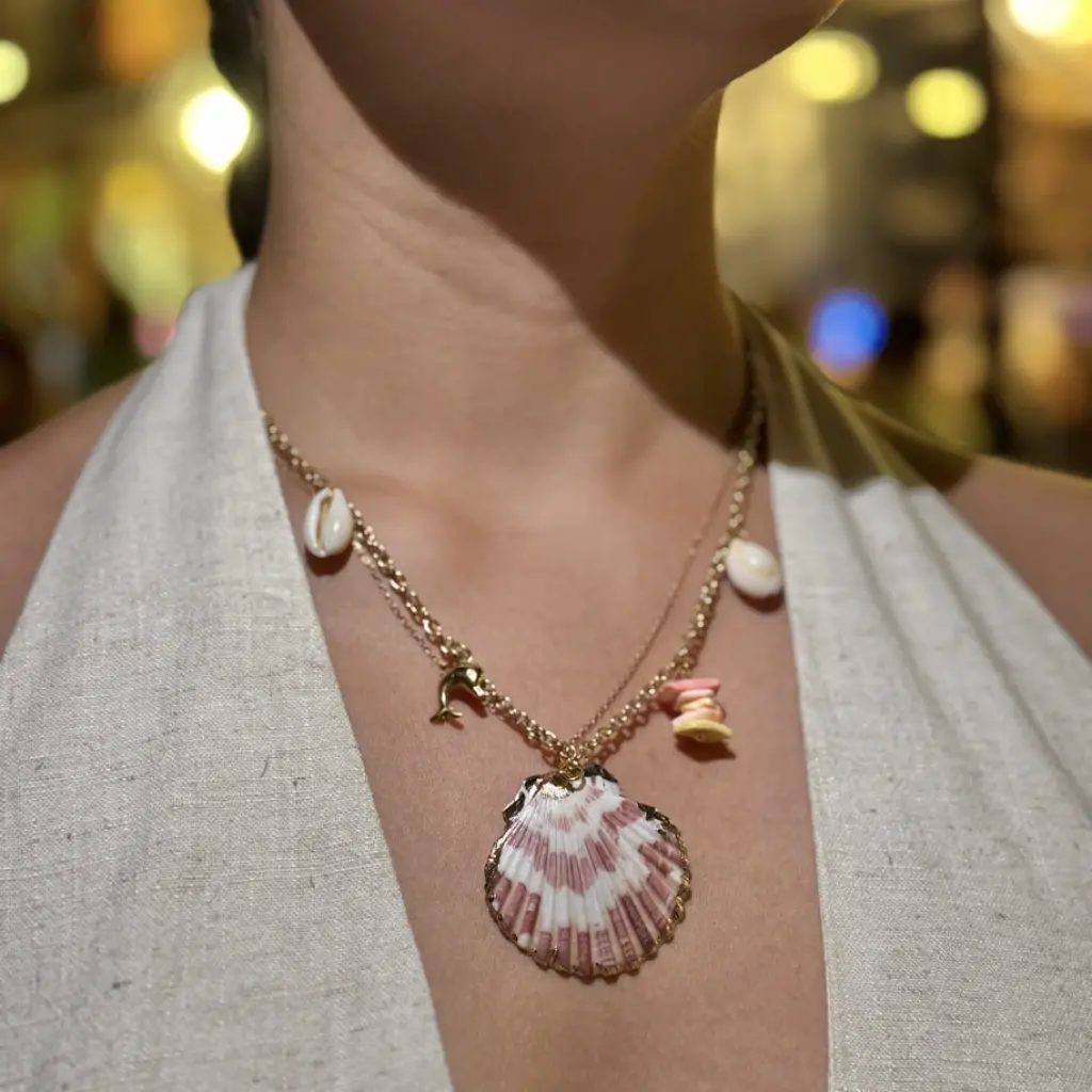 Deniz kabuklu kolyeler arasında özel bir yere sahip olan bu model, tatil kombinlerinden şehir şıklığına kadar her tarzla mükemmel uyum sağlar. Altın detayları ve dikkat çekici kırmızı kabuk formu, sade kıyafetlerle bile enerjik bir görünüm oluşturur. Özellikle yaz aylarında, deniz kenarında ya da bohem stillerde parlamanızı sağlar.
