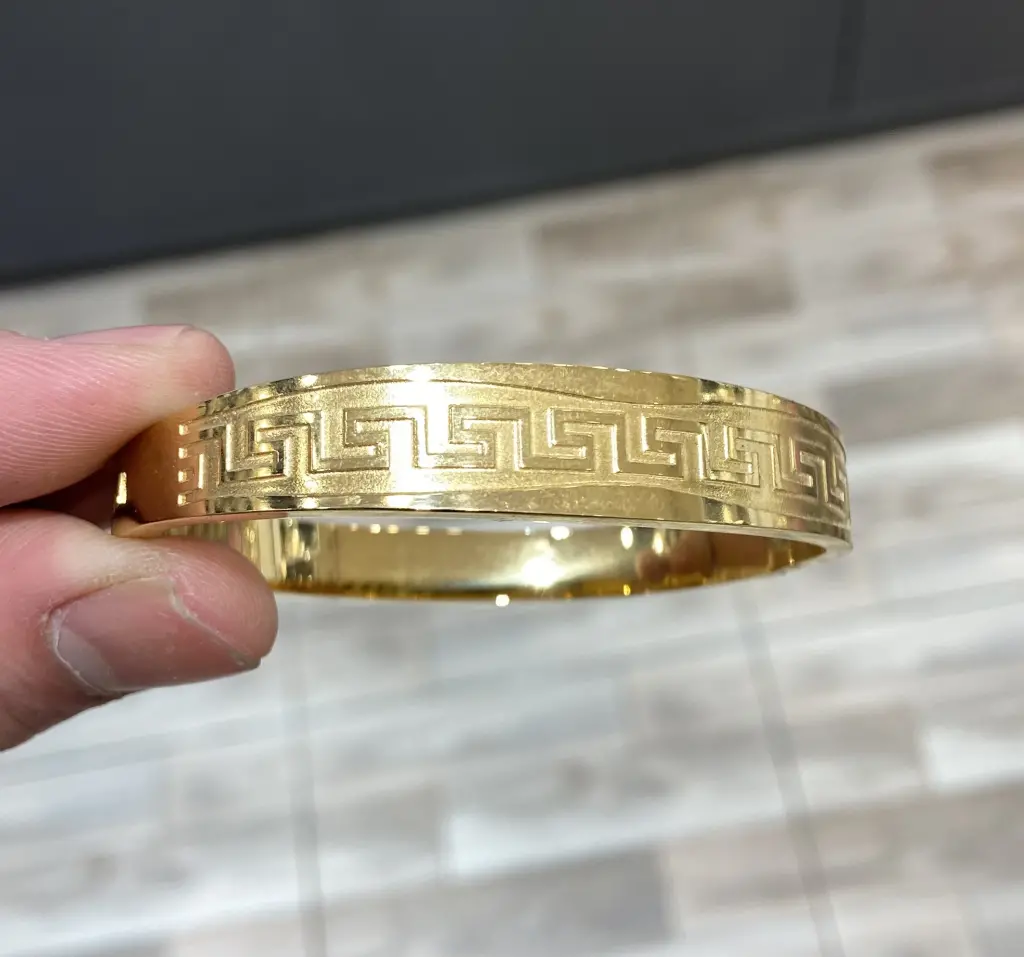 Desenli Çelik Demo Altın Bilezik, Gleam markasının özel tasarımıyla öne çıkıyor. Modern ve şık görünümü ile dikkatleri üzerinize çekecek.