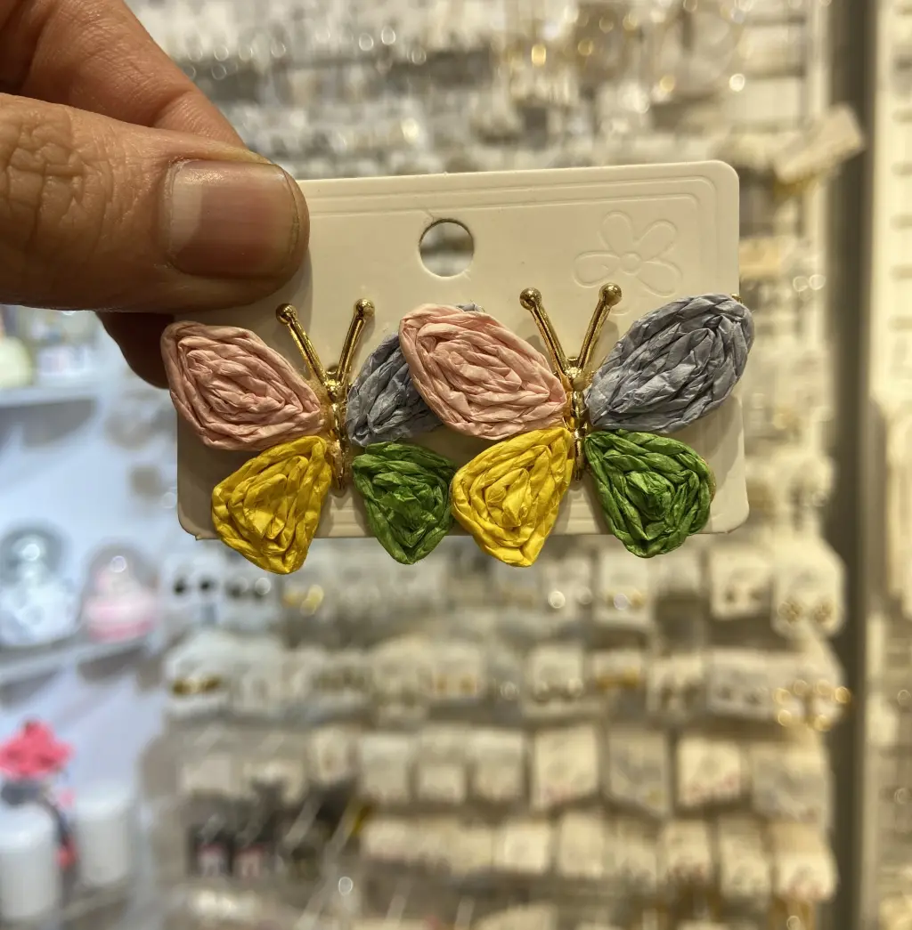 El Dokuma Örgü Hasır Renkli Kelebek Figürlü Küpe, gleam.com'da sizleri bekliyor!
