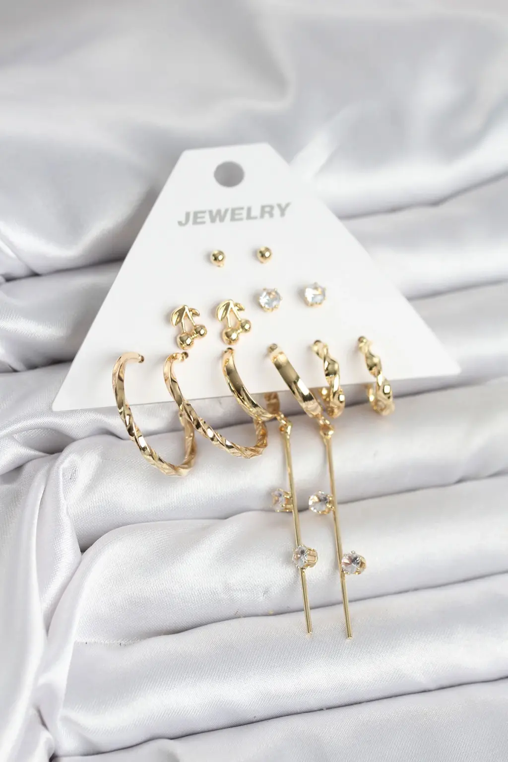 Kiraz Model Gold Renk 6 Çift Pirinç Kadın Küpe Seti Eşşiz tasarımıyla sizlerle. En uygun fiyat garantili kararmaz modelimiz karşınızda.