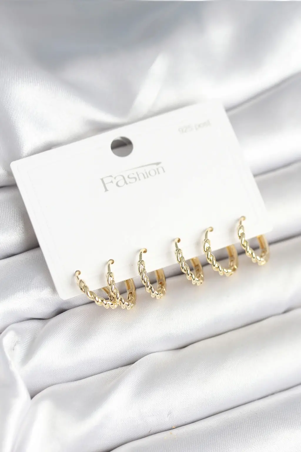 Gold Renk Burgu Halka Model 925 Ayar Gümüş Çivili Pirinç Küpe Seti Eşşiz tasarımıyla sizlerle. En uygun fiyat garantili kararmaz modelimiz karşınızda.
