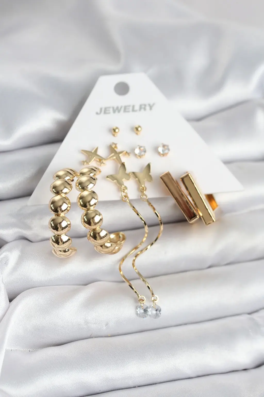 Bombeli Halka Gold Renk Pirinç 6 Çift Kadın Küpe Seti Kelebekli Zarif detaylarla, göz alıcı tasarımlarla bezenmiş özel tasarım