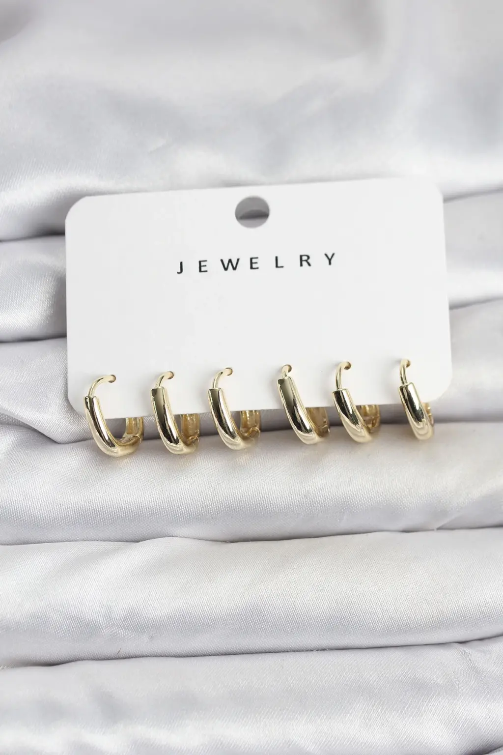 Gold Renk Pirinç Halka Kadın Küpe Seti ile her ortamda şıklığınızı konuşturun. Hemen şimdi sipariş vererek bu eşsiz setin sahibi olabilirsiniz.