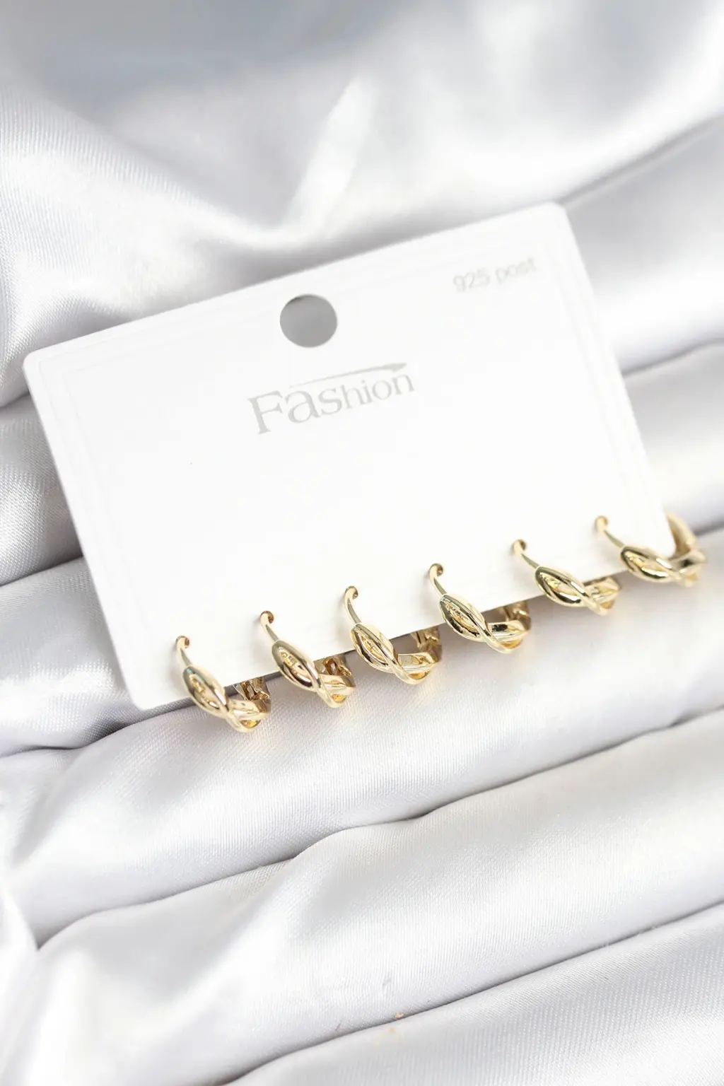 Gold Renk Pirinç Sarmal Model 925 Ayar Gümüş Çivili Kadın Küpe Seti Zarif detaylarla, göz alıcı tasarımlarla bezenmiş özel tasarım