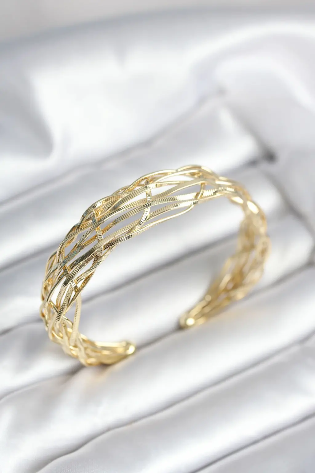 Gleam Gold Renk Pirinç Vintage Kadın Bileklik, vintage tarzını modern tasarımla birleştiriyor.