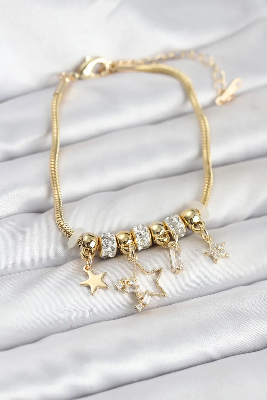Gleam Gold Renk Çelik Yıldız Model Charmlı Kadın Bileklik
