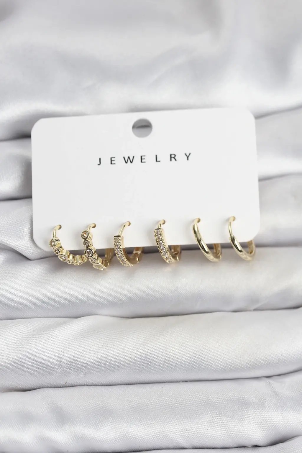 Zirkon taşlarla detaylandırılmış olan bu set, ister tek başına ister diğer küpelerle kombinleyerek kullanılabilir.