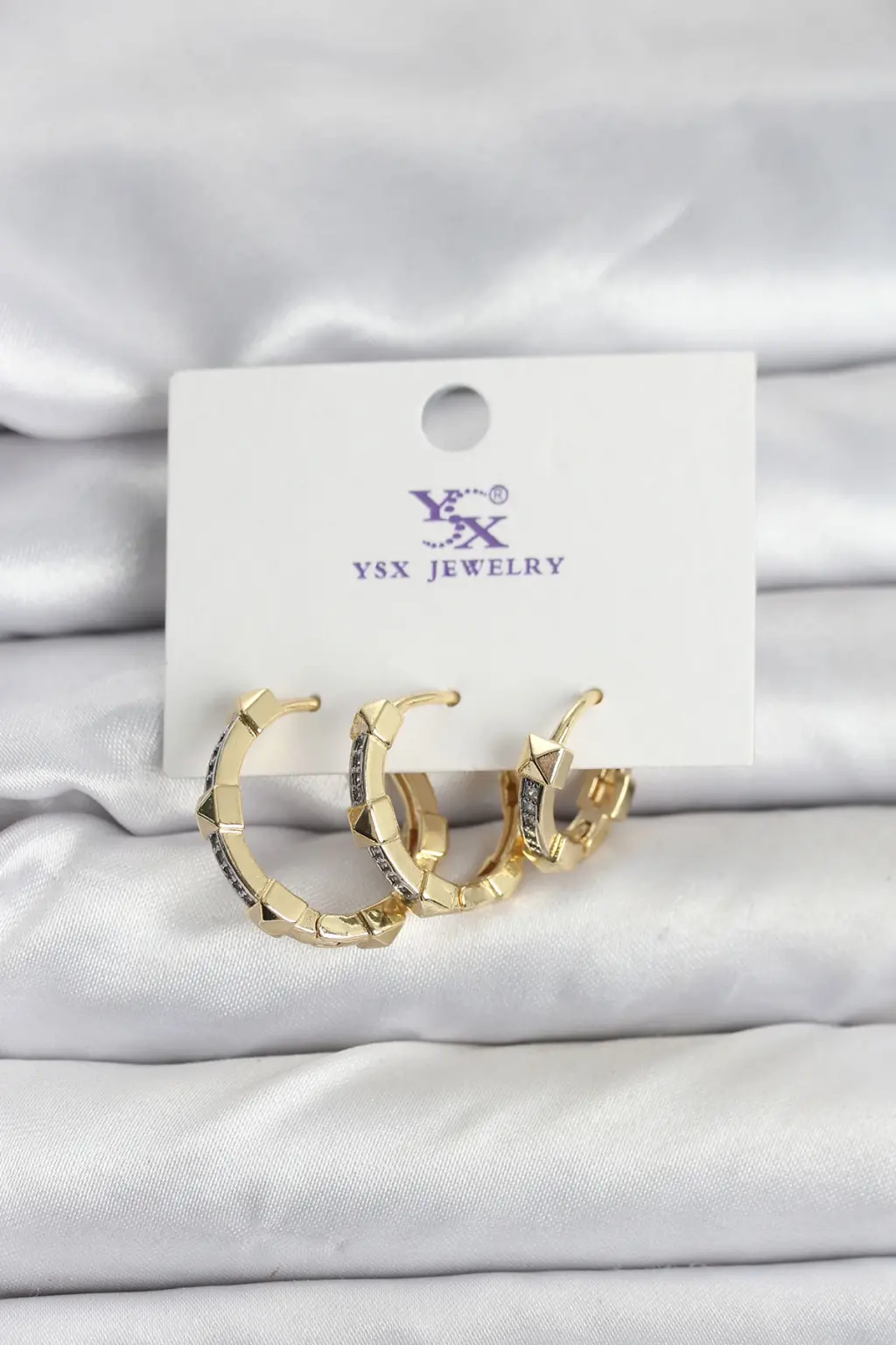 Gold Renk Zirkon Taşlı Halka Model Vip Kadın Küpe özel tasarım