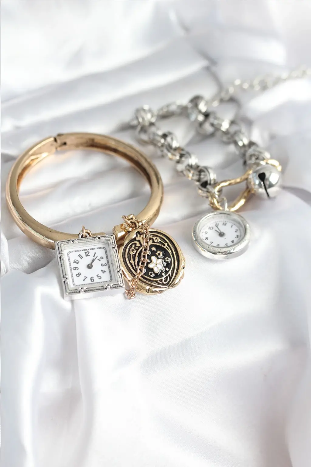 Gold ve gümüş renk bileklik kombini ile Gleam'den şık ve modern bir görünüme sahip olabilirsiniz.