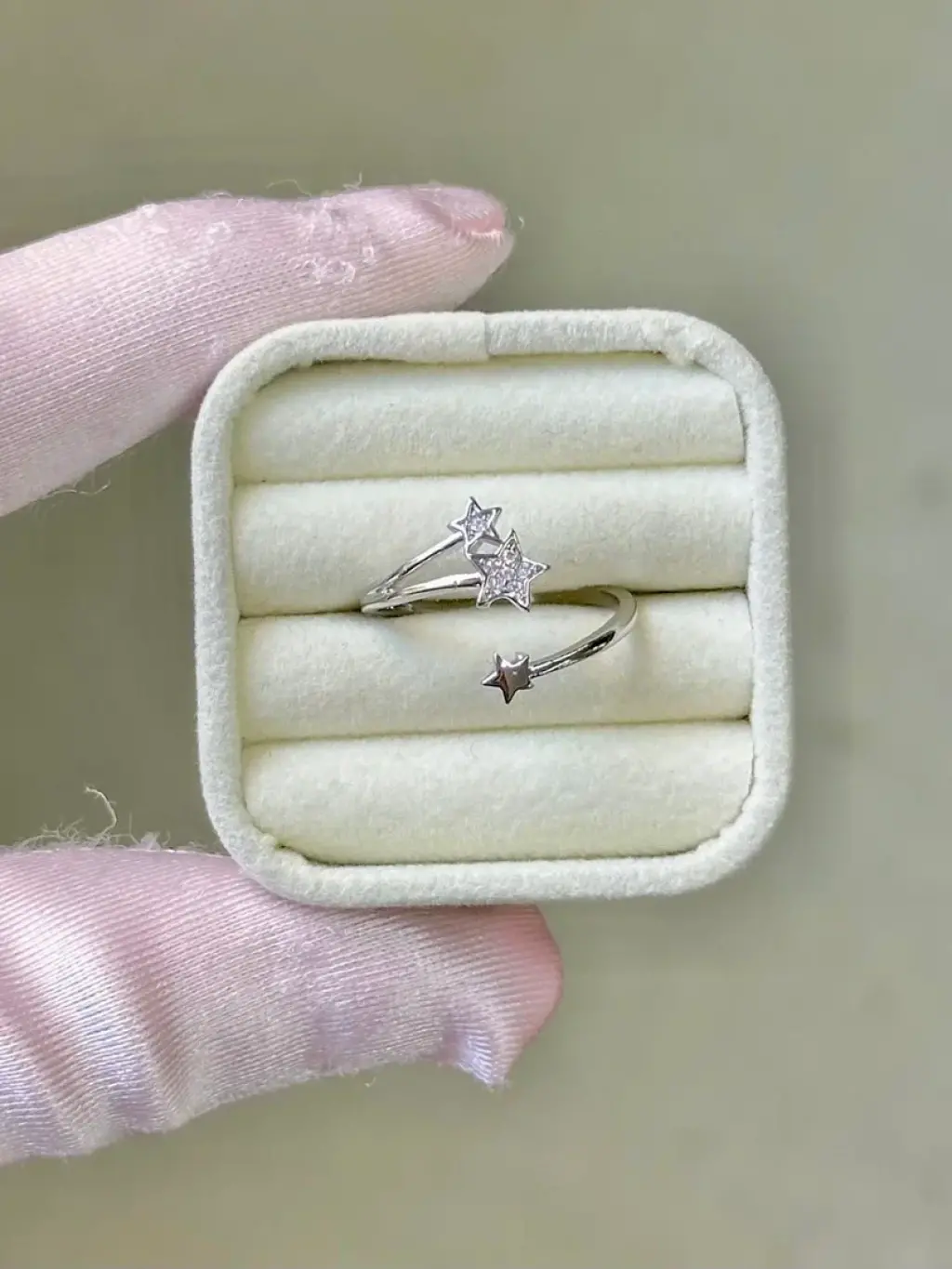 Yüzük Modellerimizden nadide bir parça Gümüş Çift Yıldızlı Kadın Yüzük Modeli ile parmaklarınızın ışıltısını tüm dünyaya göstermek istemez misiniz?