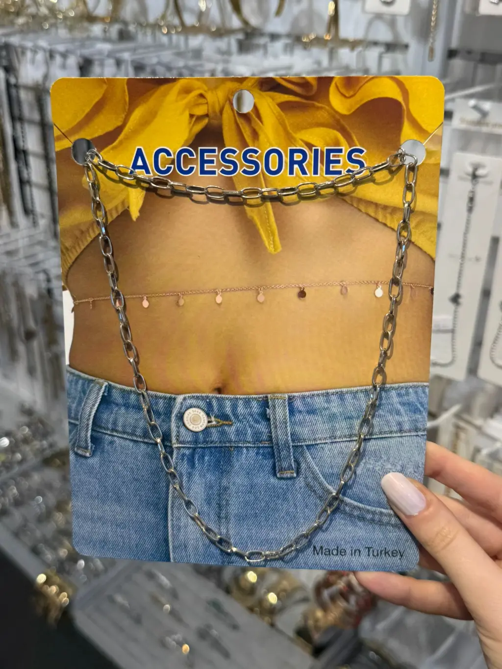 Sade ama etkileyici duruşu sayesinde hem bohem hem modern tarzlara hitap eder. Işıltılı gümüş tonuyla vücudu zarifçe saran bu göbek zinciri, görünümüne cool ve şık bir dokunuş ekler.