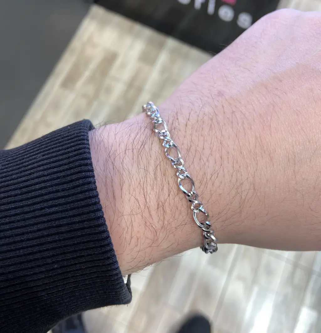 Günlük stilinde sade ama güçlü bir dokunuş isteyen erkekler için tasarlanan Gümüş Renk Figaro Zincir Çelik Erkek Bileklik, modern sokak modasının en temiz yansıması. İnce ama karakterli Figaro zincir halkaları, bilekte hafif ve akıcı bir görünüm oluşturur. Hem spor hem de şık tarza uyum sağlayan bu model, her kombinde minimal bir tamamlayıcı görevi görür.