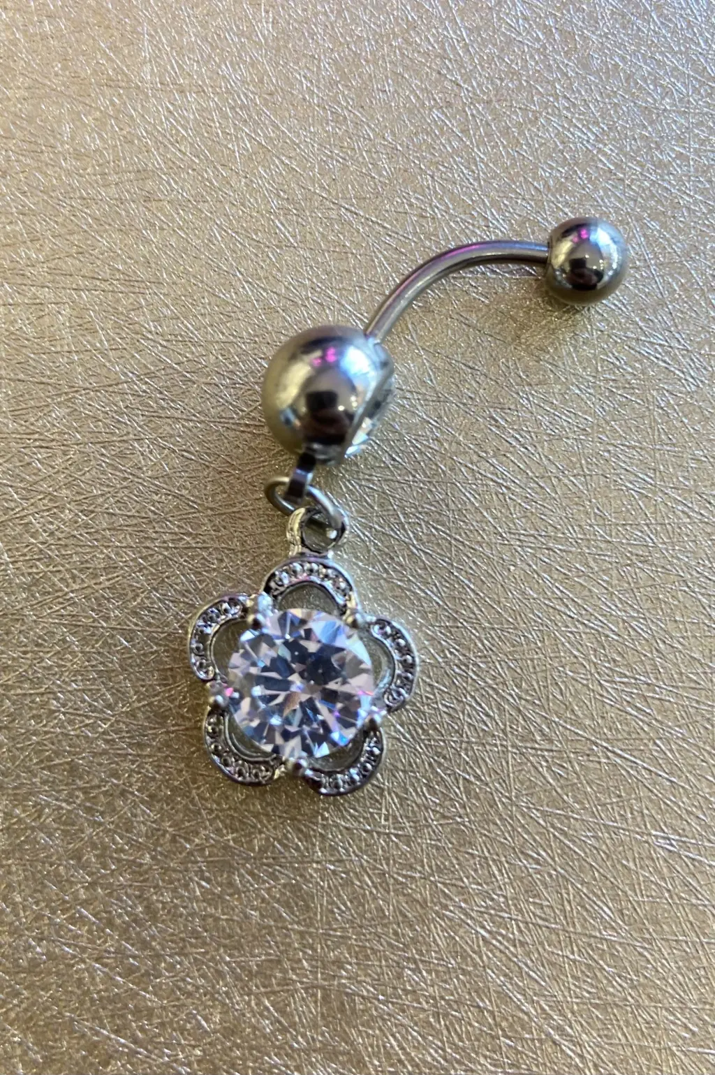 Orta boyutuyla dikkat çeken bu göbek piercing, özel tasarımıyla fark yaratır. Kendinizi ifade etmenin ve tarzınızı yansıtmanın en şık yollarından biridir.