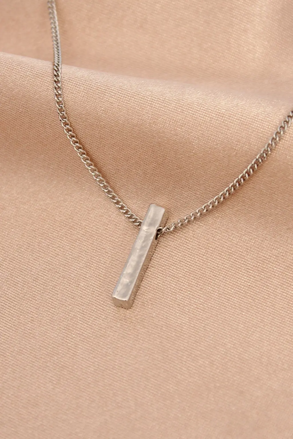 Gümüş rengi ve metalik görünümüyle dikkat çeken bu kolye modeli, günlük kullanıma uygun şık ve sade bir tasarıma sahiptir.