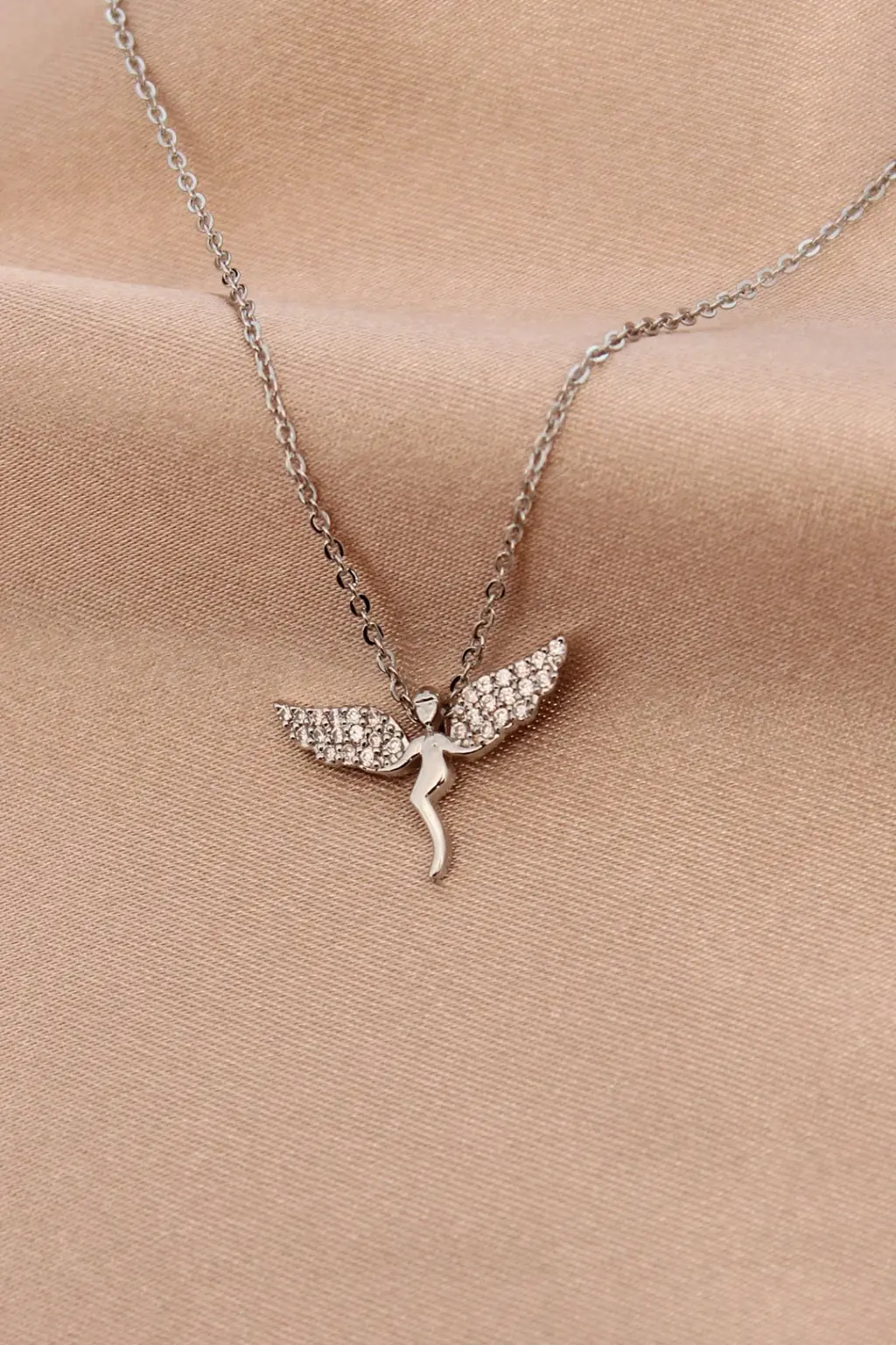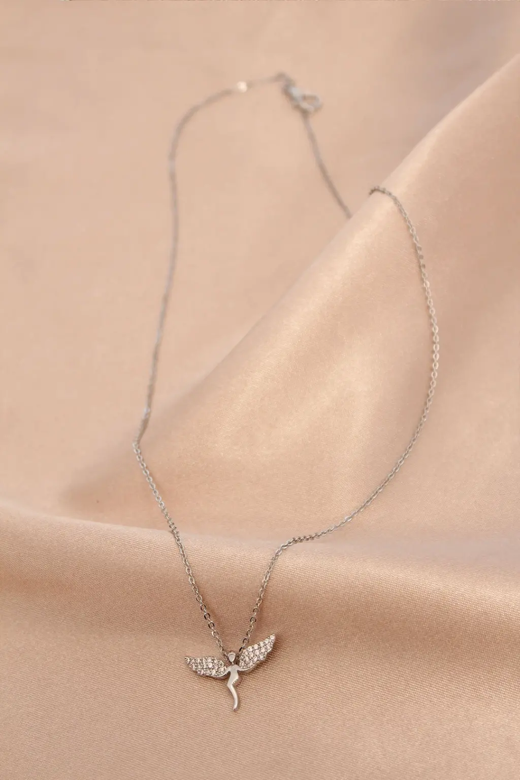 Gümüş Renk Metal Zirkon Taşlı Peri Kolye özel tasarım