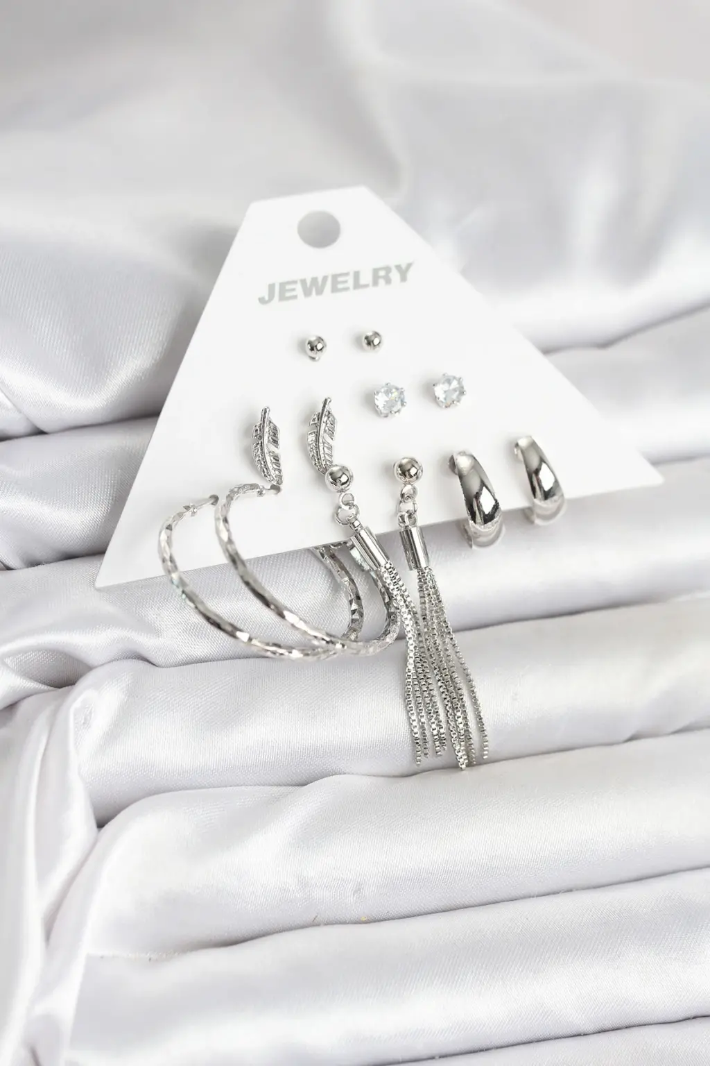 Küpe, her kombinin tamamlayıcı parçasıdır Yapraklı Gümüş Renk Pirinç Püsküllü 6 Çiftli Kadın Küpe Seti tam size göre. Gleam'in