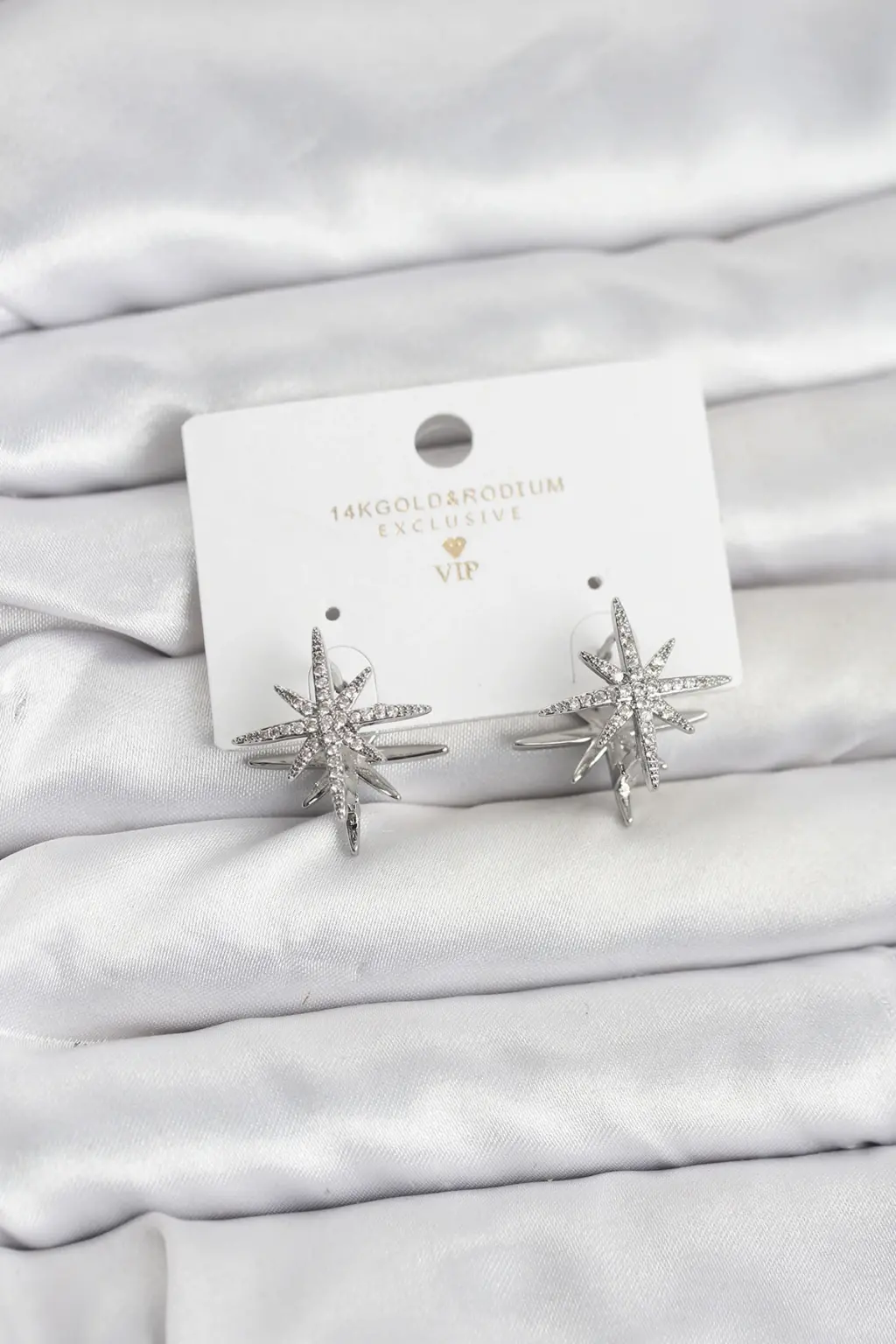 Pırıltılı ve zarif bir stil arayan kadınlar için ideal bir seçim olan Gleam marka Gümüş Renk Pirinç Çift Taraflı Kutup Yıldızı Kadın Küpe, her kombini tamamlayacak şık tasarımı ile dikkat çekiyor.