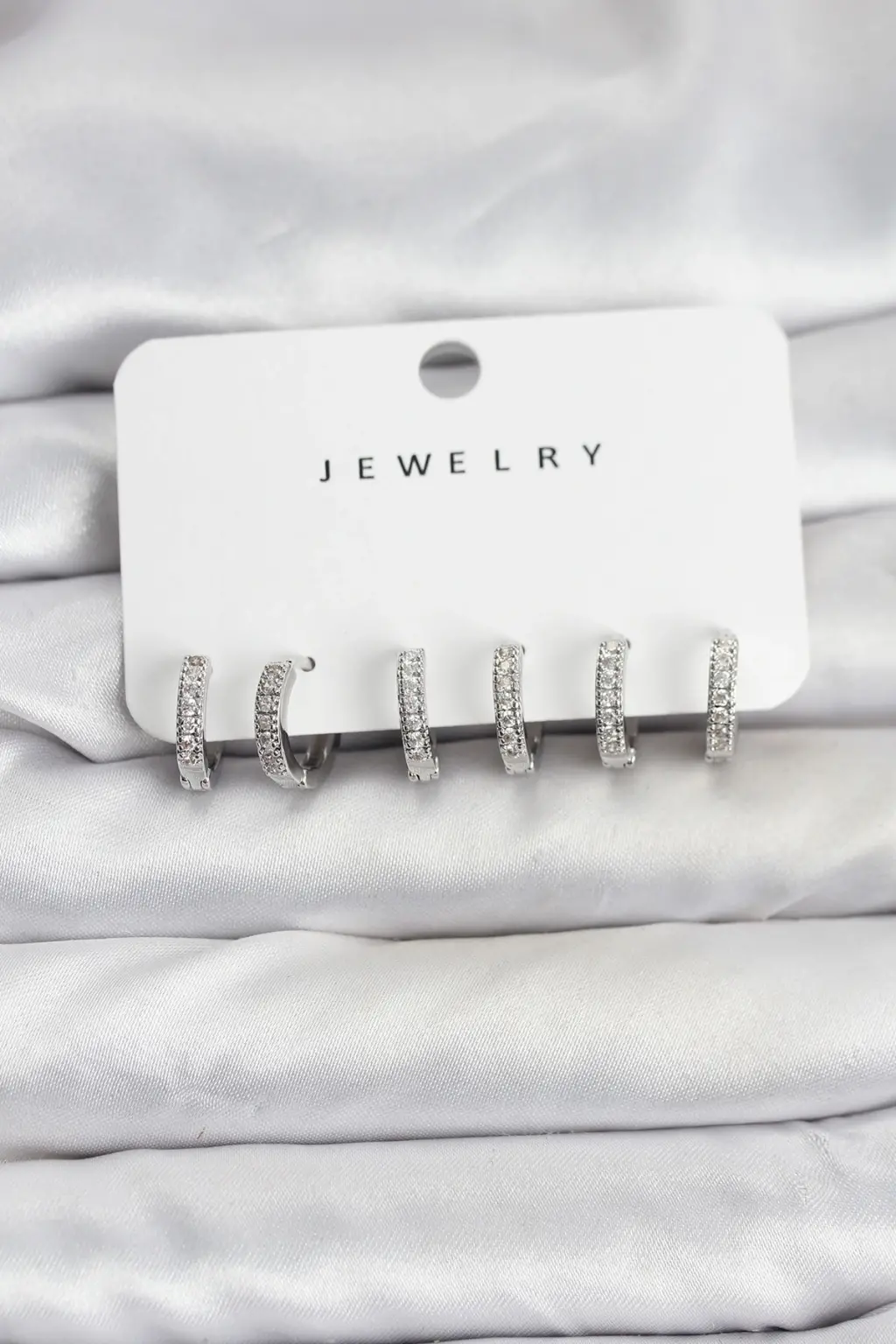 Gleam Gümüş Renk Pirinç Zirkon Taşlı Halka Kadın Küpe Seti ile şıklığı ve zarafeti bir arada yaşayın!