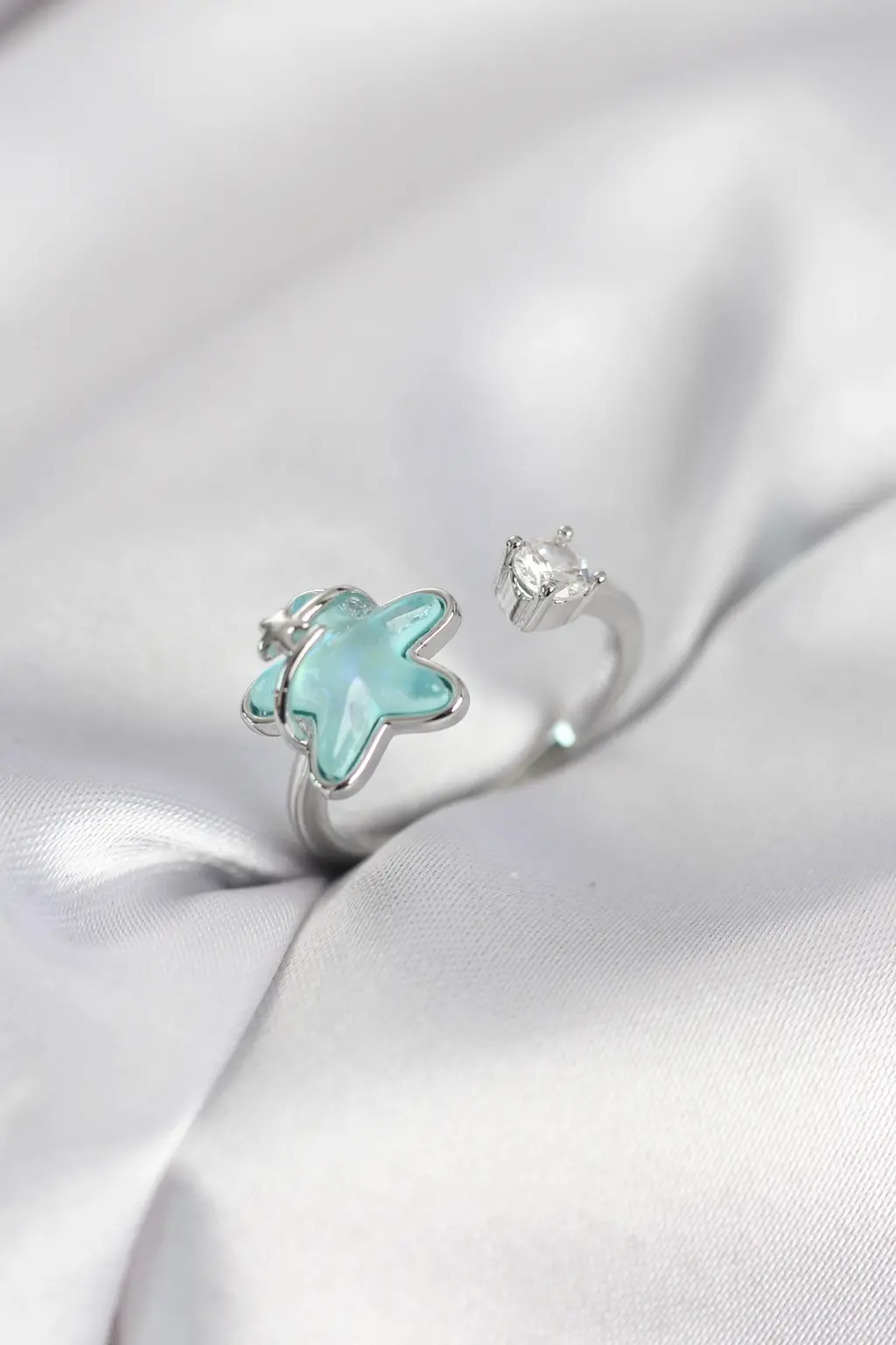 Yüzük Modellerimizden nadide bir parça Gümüş Renk Turkuaz Yıldız Model Kadın Yüzük ile parmaklarınızın ışıltısını tüm dünyaya göstermek istemez misiniz?