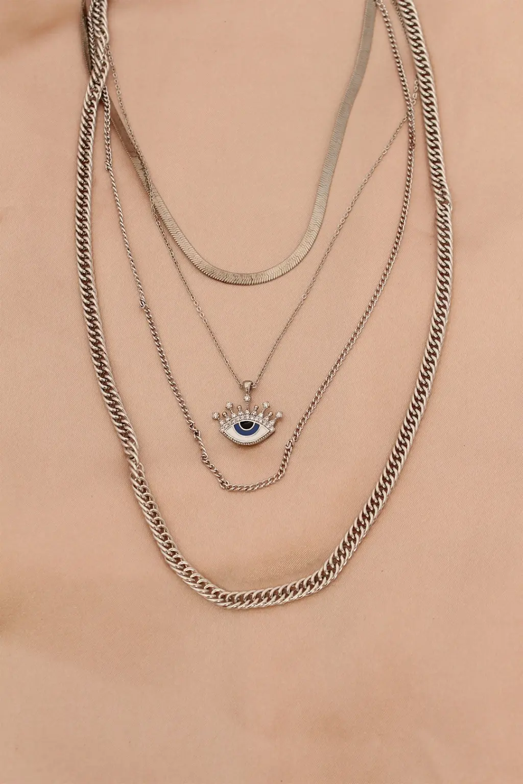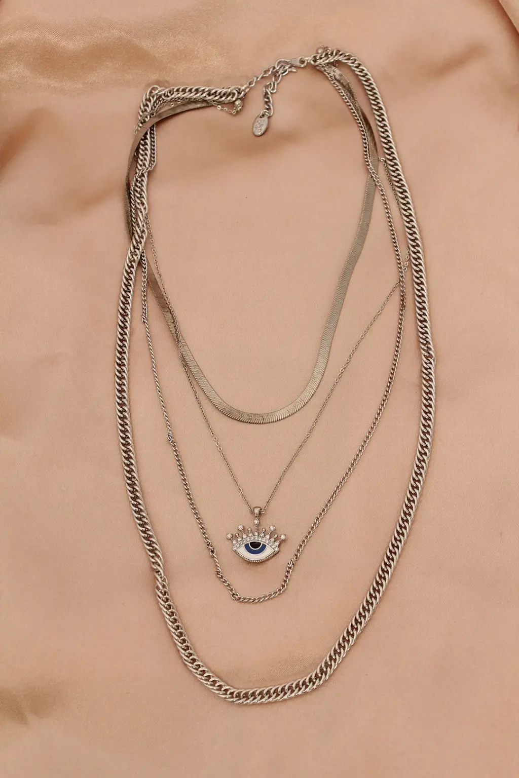 Gümüş Renkli Metal İtalyan Zincirli Göz Detaylı Çoklu Kadın Kolye Zarif detaylarla, göz alıcı tasarımlarla bezenmiş özel tasarım