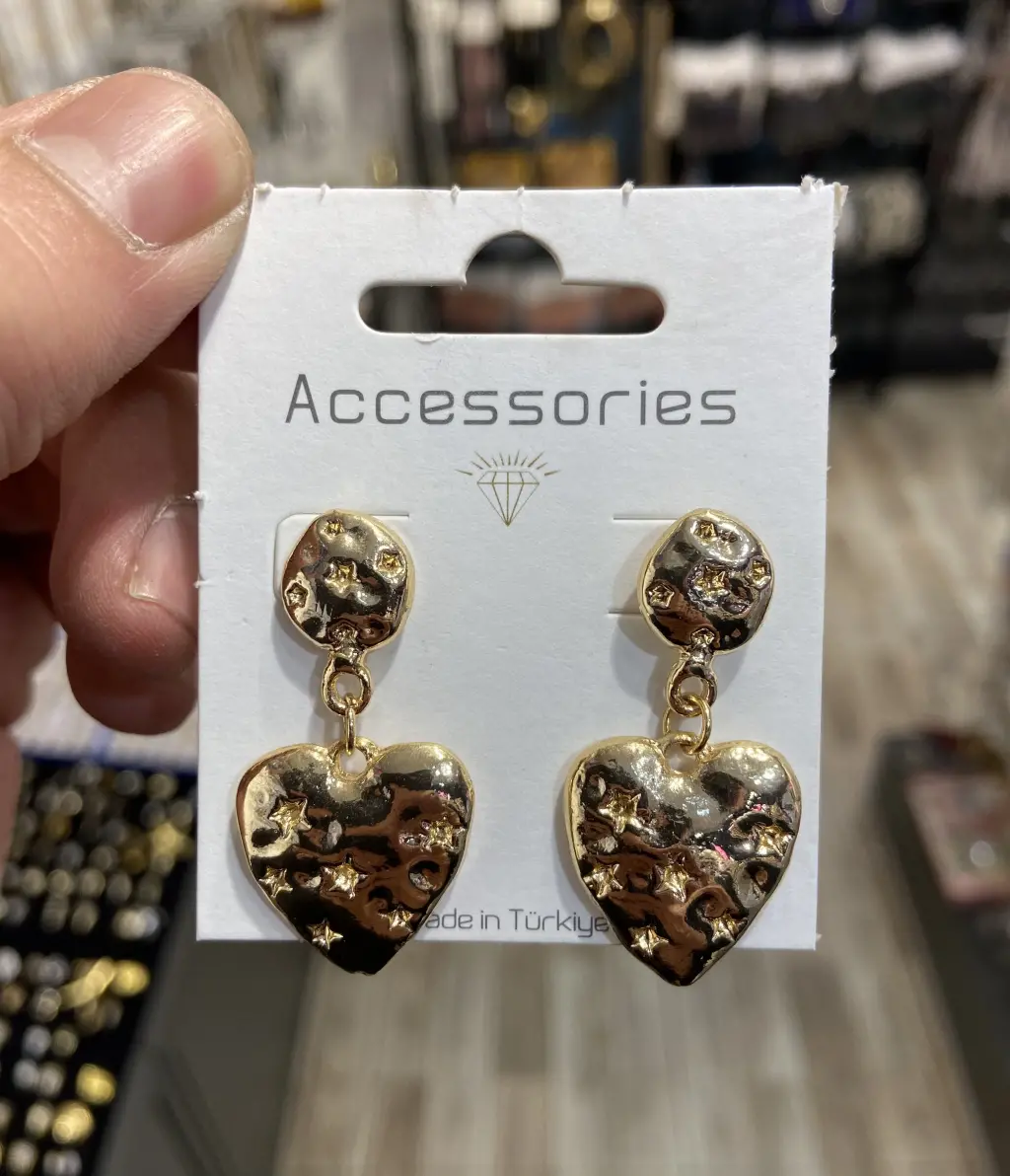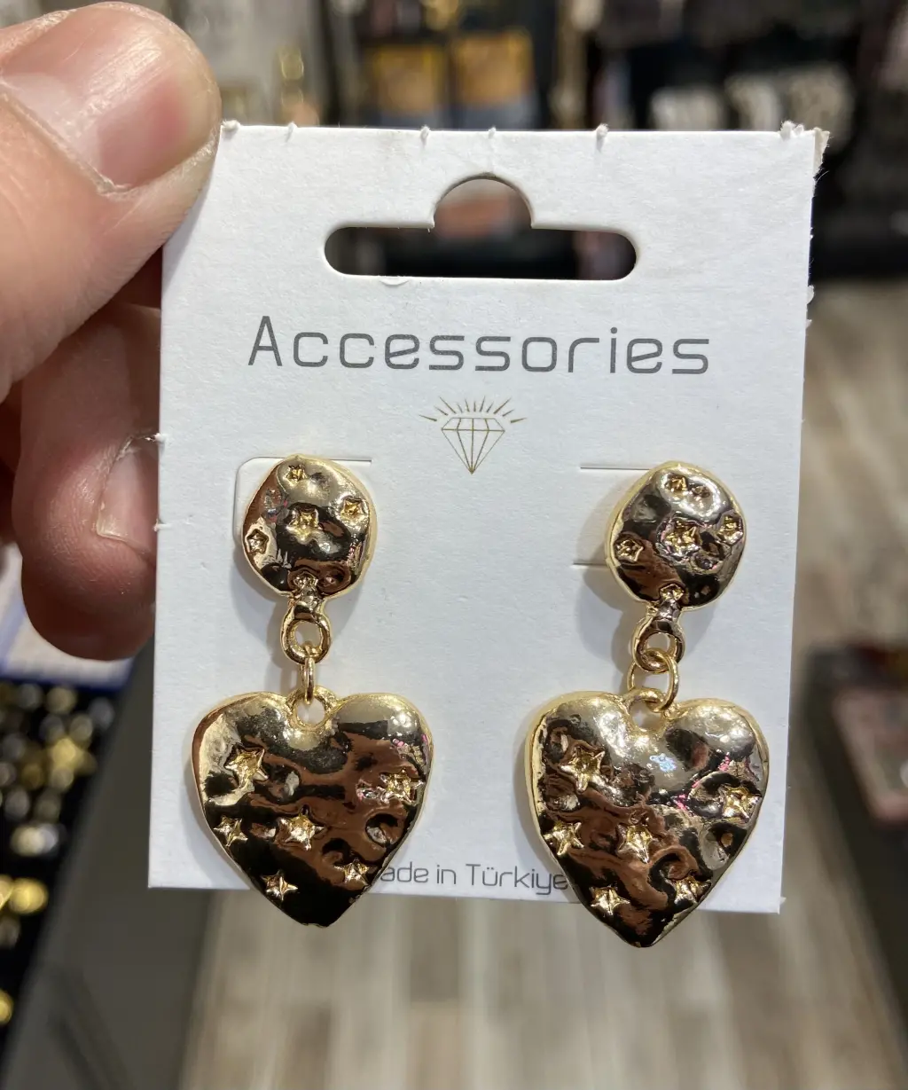 Altın rengiyle tasarlanmış şık bir görünüme sahip olan Gleam marka bu kalpli küpeler, her gün kullanabileceğiniz şık bir model sunmaktadır. Küpelerin üzerinde bulunan yıldız işlemeleri, tasarıma hareket katarak dikkat çekici bir görünüm sunar.
