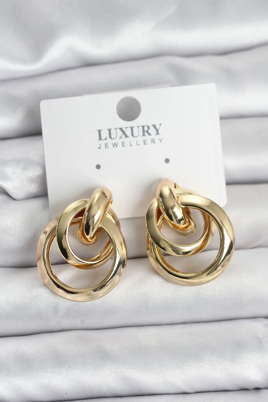 İç içe Geçmiş Gold Renk Halka Model Pirinç Kadın Küpe Zarif detaylarla, göz alıcı tasarımlarla bezenmiş özel tasarım