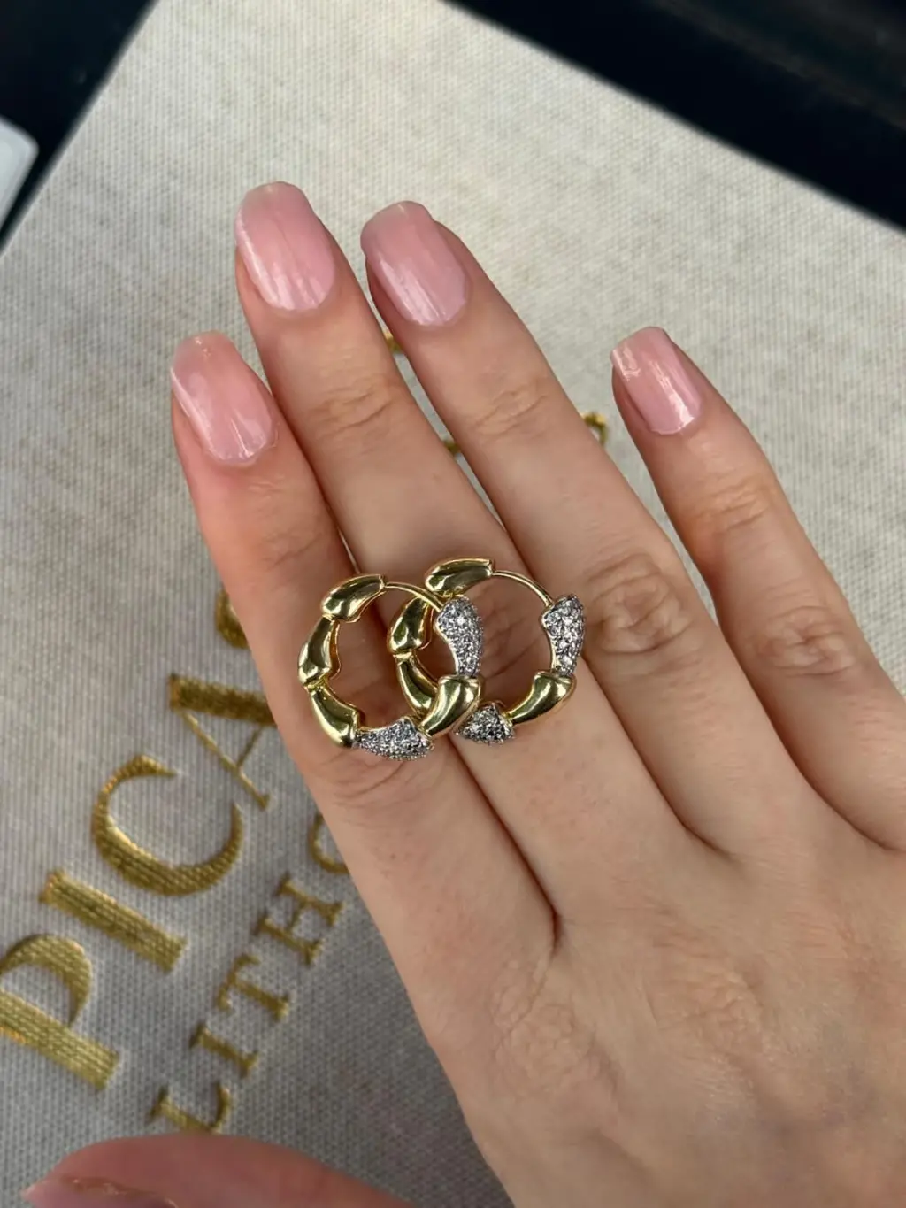 Takı koleksiyonuna kaliteli ve trend görünümlü bir halka küpe eklemek isteyenler için mükemmel bir seçim olan İki Renkli Gurmet Taşlı Bombeli Halka Küpe