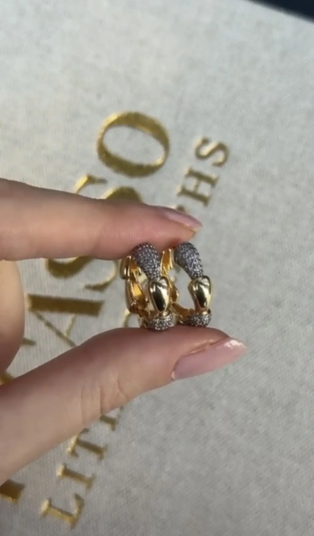 Modern detaylarla zenginleştirilmiş şık tasarımıyla öne çıkan İki Renkli Gurmet Taşlı Bombeli Halka Küpe, son dönemin en sevilen trendlerinden biri olan gurmet zincir dokusunu zarif bir şekilde yansıtır. Altın ve gümüş rengin kusursuz uyumuyla hazırlanan bu model, iki renkli görünümü sayesinde farklı takılarla kolayca kombinlenebilir ve çok yönlü bir kullanım sunar. Bombeli formu sayesinde kulakta dolgun ve dikkat çekici bir duruş sergilerken, üzerini süsleyen parlak zirkon taşlar tasarıma şık bir ışıltı kazandırır. Taşlı Halka küpeler kadınlsr için kurtarıcı bir özel koleksiyonluk üründür her an yanınızdadır , ister özel gün ister günlük kullanımda olsun.