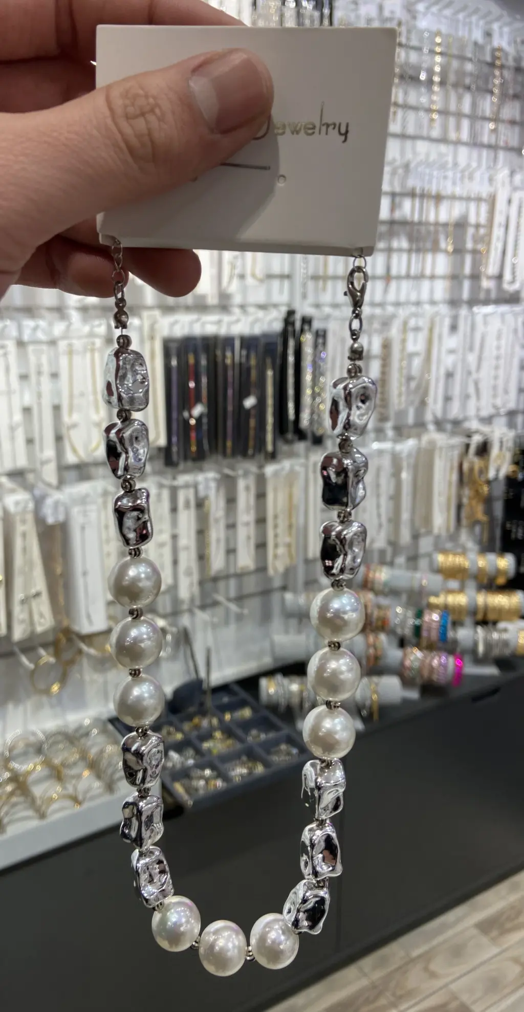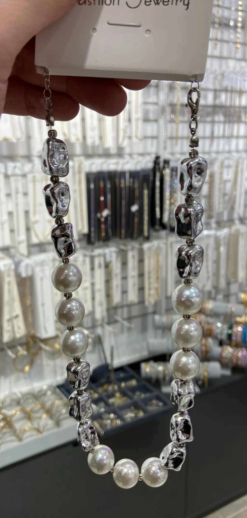 İncili Gümüş Renk Büyük Boy Zara – Mango Model Tasarım Kolye