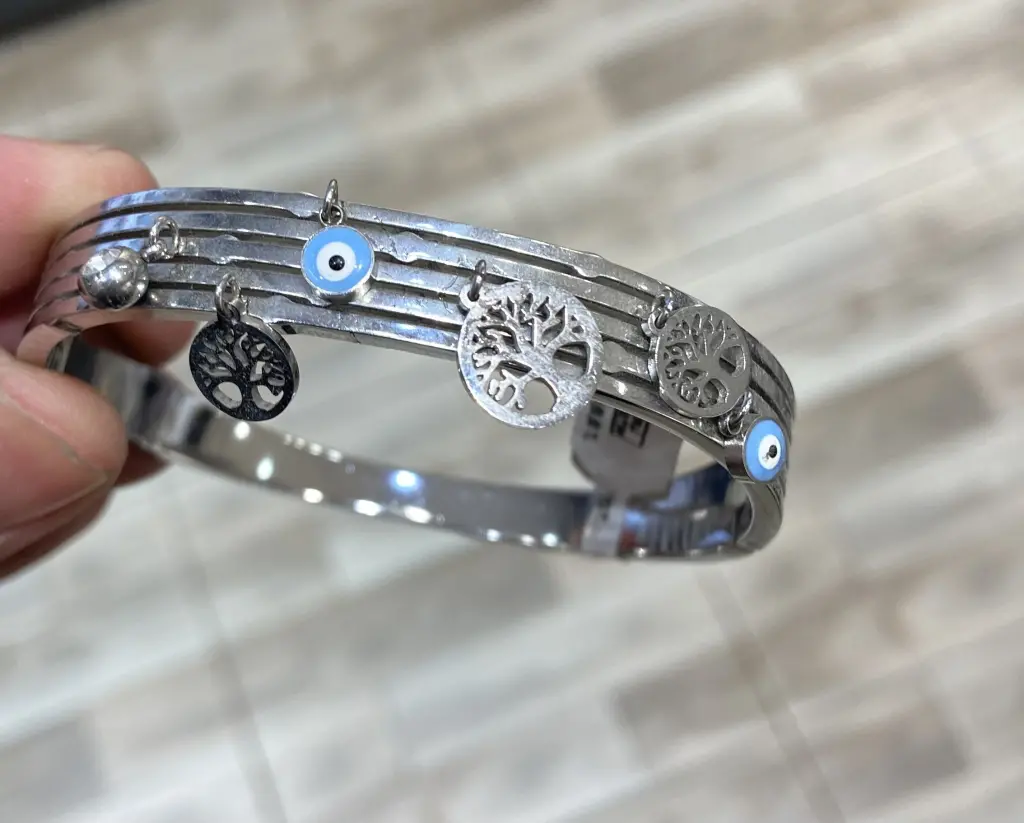 Gleam'in bu kelepçe bileziği, her an yanınızda taşıyabileceğiniz şık ve anlamlı bir aksesuardır. Nazar boncuğu ile şansınızı artırırken, hayat ağacı ve yaşam çiçeği motifleriyle doğanın güzelliklerini bileğinizde taşıyacaksınız. Hem şık görünmek hem de korunmak isteyenler için ideal bir seçenektir.