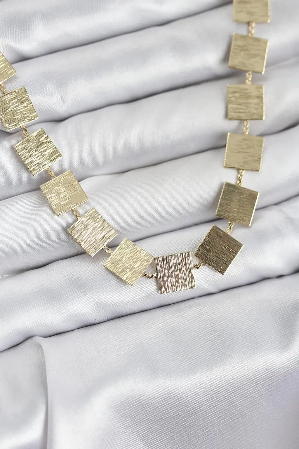 Gleam Kare Plaka Model Gold Renk Kadın Kolye, her yaş grubundan kadının beğenisini kazanacak ve şıklığınızı tamamlayacak mükemmel bir tamamlayıcıdır. Hemen satın alarak kusursuz tarzınızı yansıtın!