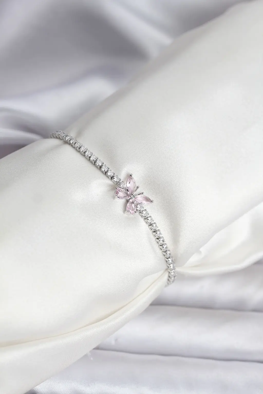 Kelebek Model Zirkon Taşlı Gümüş Renk Pirinç Su Yolu Kadın Bileklik Eşşiz tasarımıyla sizlerle. En uygun fiyat garantili kararmaz modelimiz karşınızda.