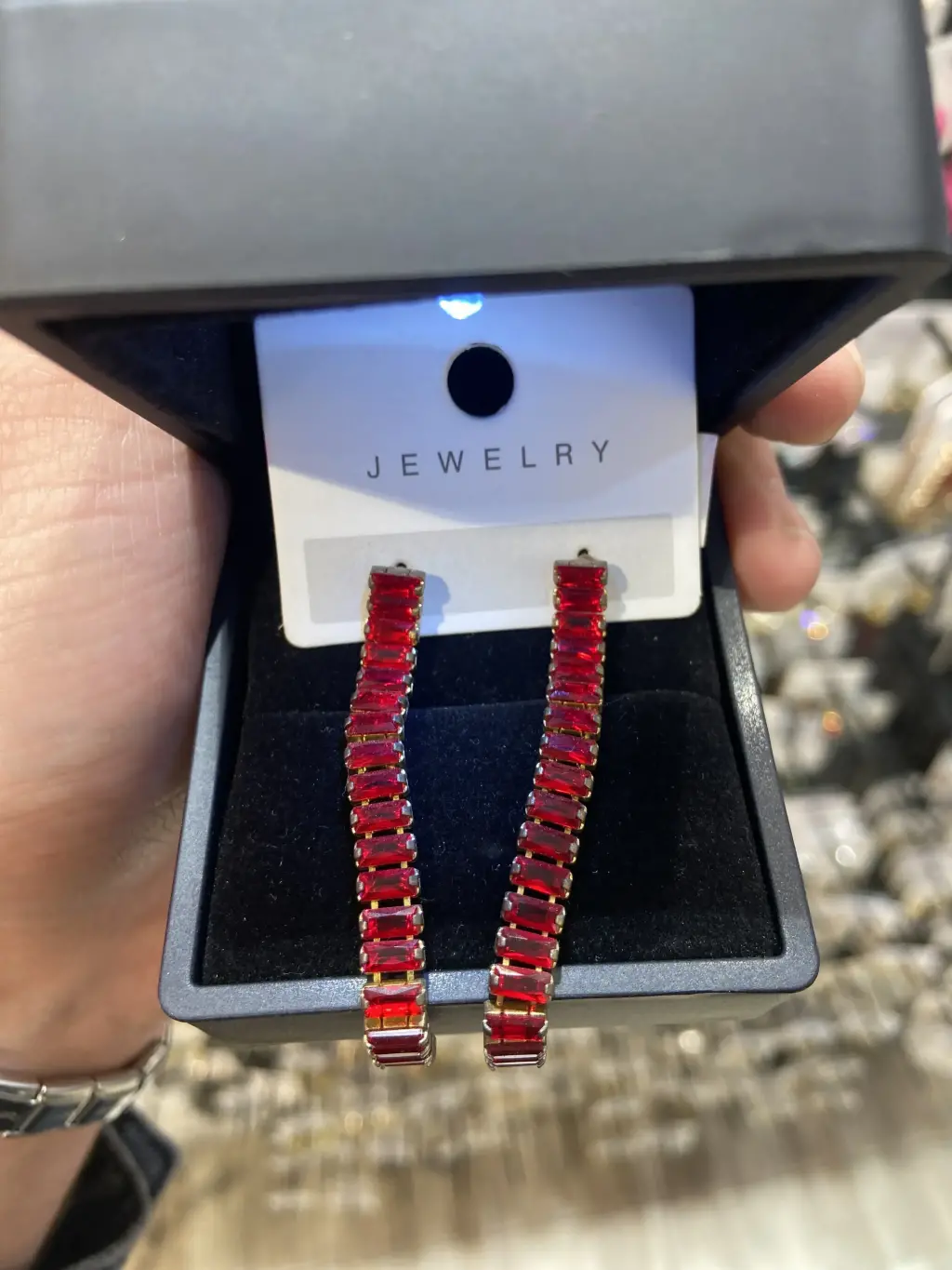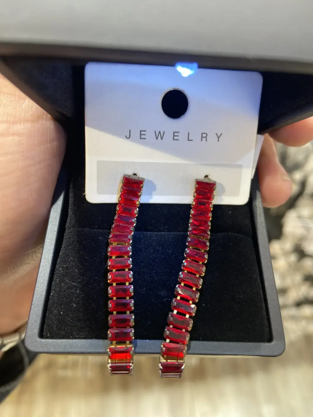 Kırmızı Taşlı Uzun Su Yolu Baget Küpe – Şık ve Çarpıcı Tasarım