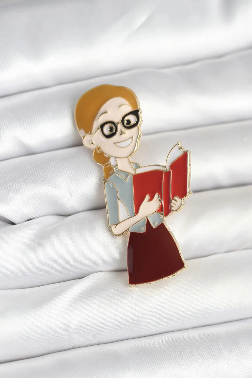Kitap Okuyan Öğretmen - Akademisyen Figürlü Kadın Broş, Gleam markası ile şıklığı ve özgünlüğü bir araya getiriyor.