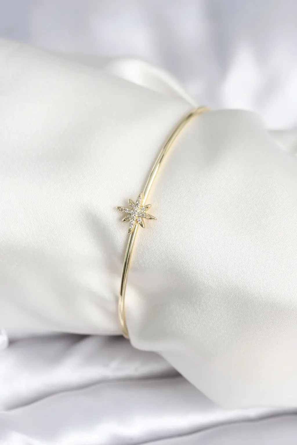 Kutup Yıldızı Figür Pirinç Gold Renk Kadın Bileklik Zarif detaylarla, göz alıcı tasarımlarla bezenmiş özel tasarım