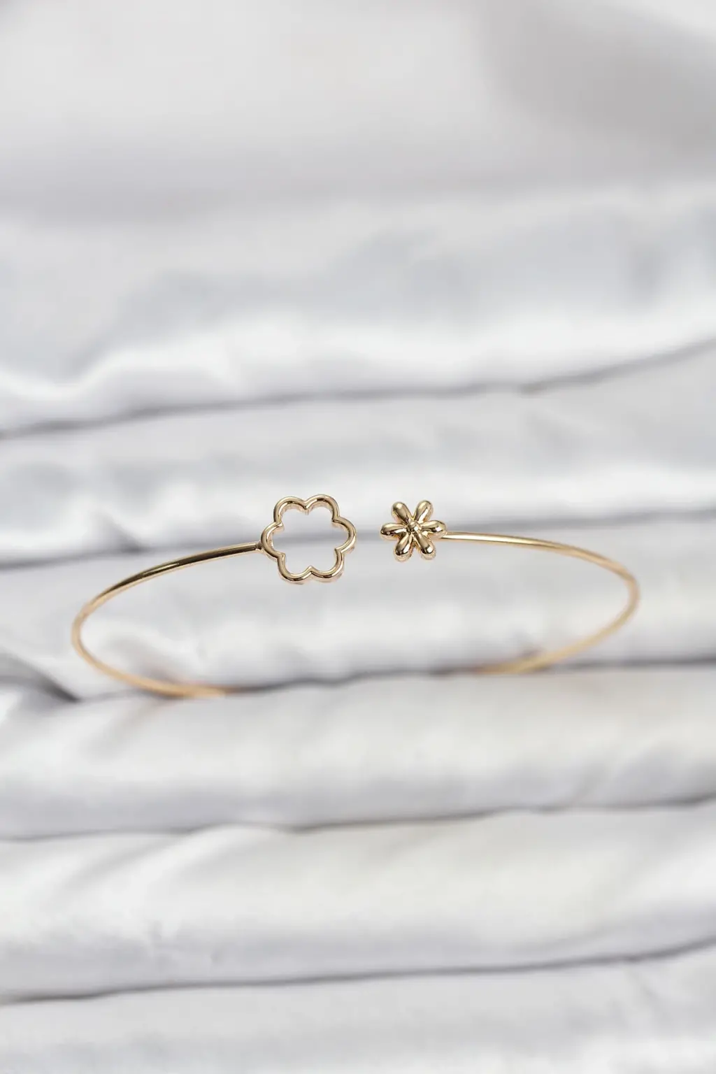 Gleam markası tarafından tasarlanan Lotus Çiçeği Model Gold Renk Minimal Kelepçe Bilezik, şıklığı ve zarafeti bir arada sunuyor.