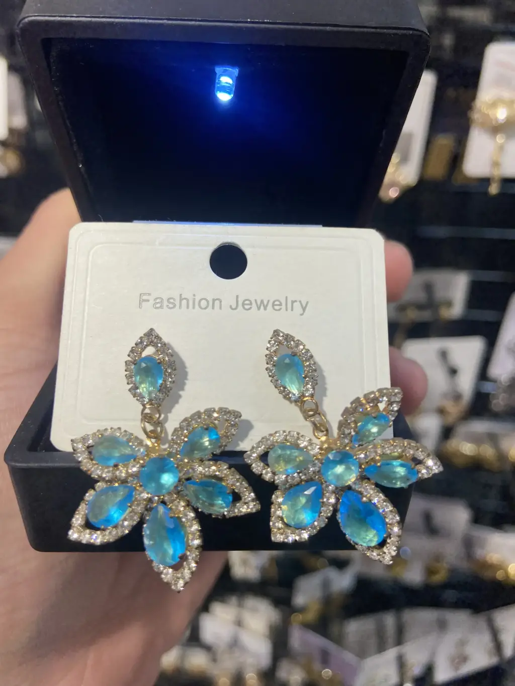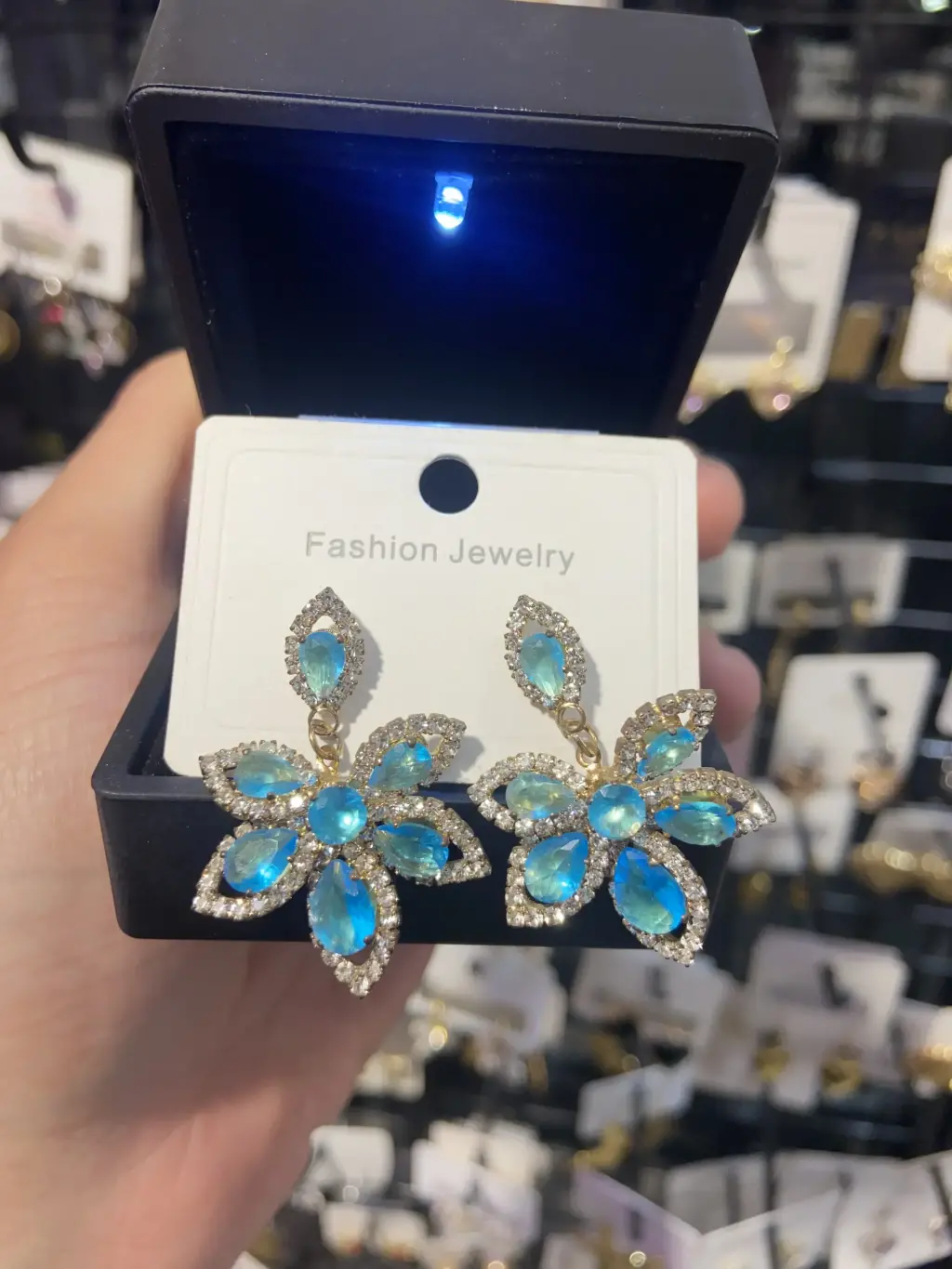 Göz alıcı detaylarıyla dikkat çeken Mavi Taşlı Çiçek Model Abiye Sallantılı Küpe, zarafet ve ışıltıyı bir araya getiren çarpıcı tasarımıyla özel günlerin vazgeçilmezi olmaya aday. Parlak mavi taşlarla tasarlanan çiçek formu, çevresini saran zirkon taşlarla birleşerek ışığı kusursuz bir şekilde yansıtır. Hem feminen hem de sofistike bir görünüm sunan bu model; düğün, nişan, söz, mezuniyet ve davetler gibi özel anlarda stilinize etkileyici bir dokunuş katar.