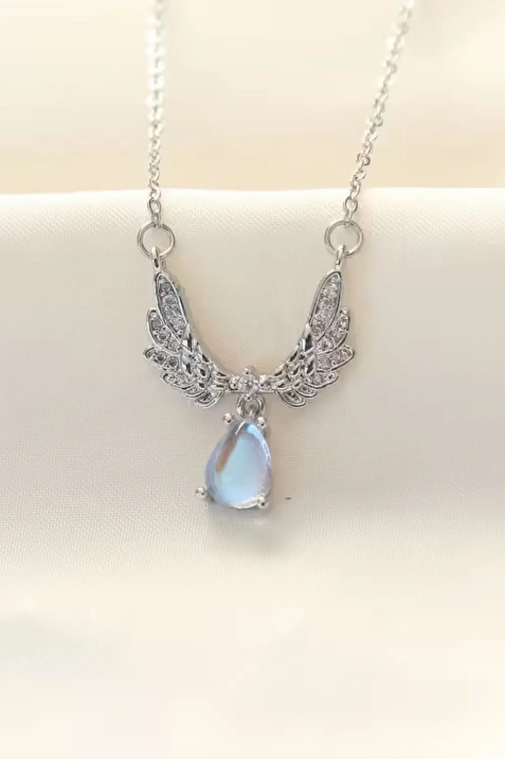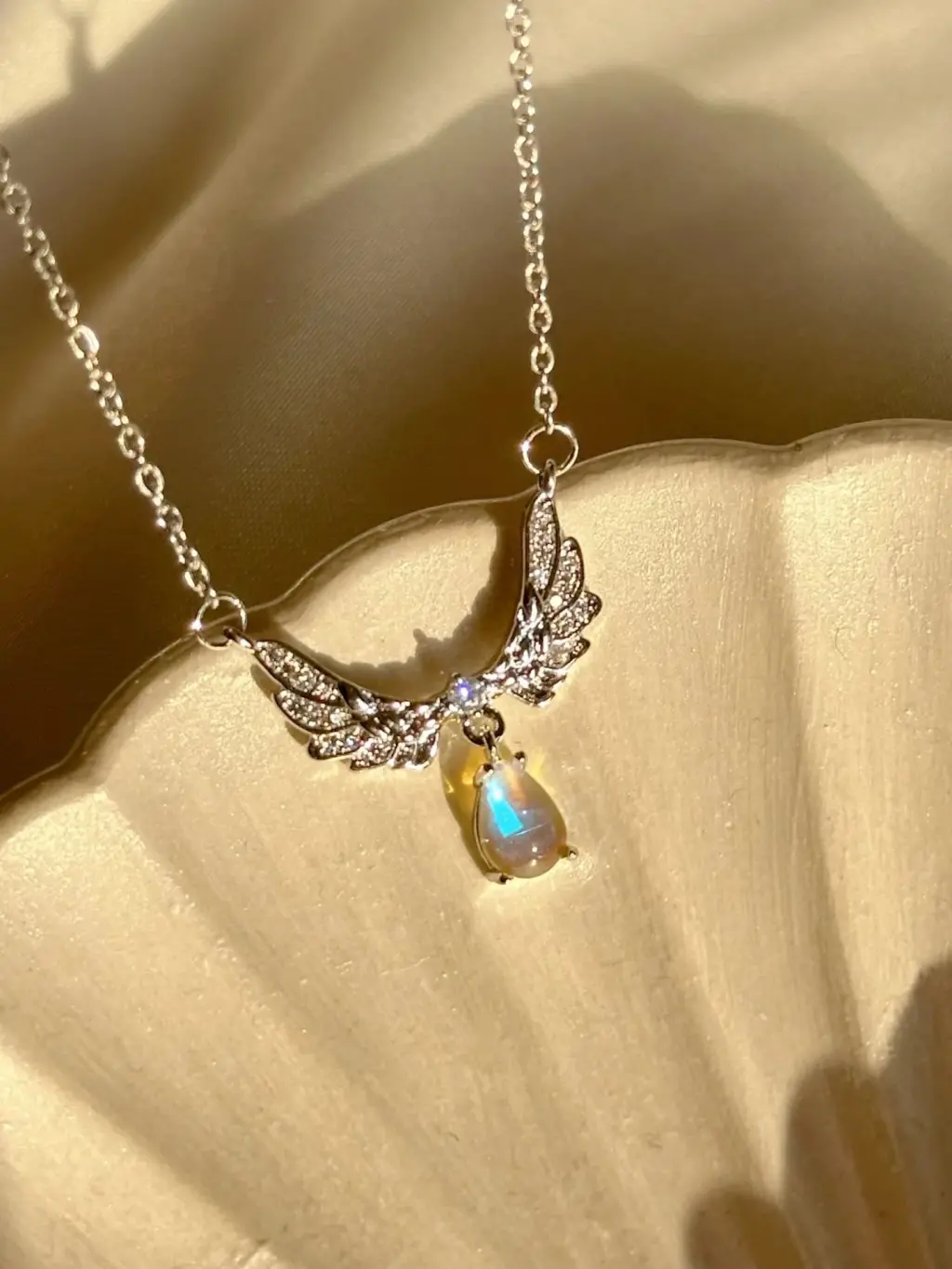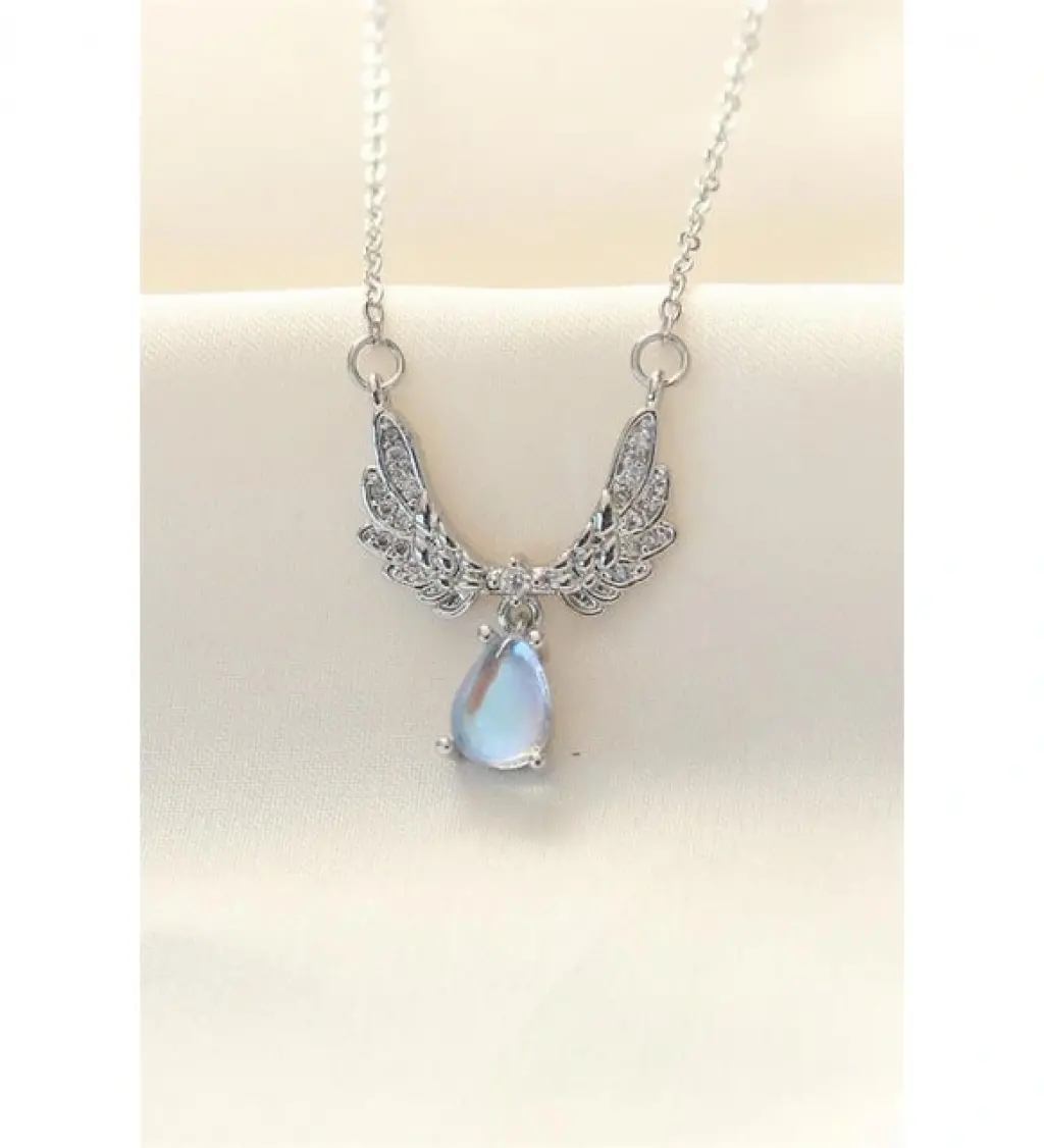 Melek Kanadı Damla Taşlı Gümüş Kolye