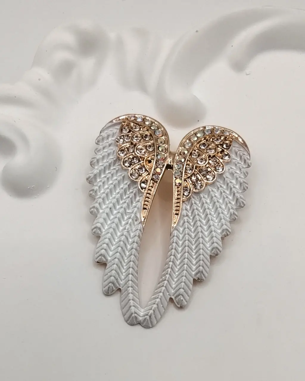 Melek kanadı şeklindeki detaylar, broşu benzersiz kılıyor ve sizi diğerlerinden farklı bir şekilde öne çıkarıyor. İster günlük kullanımda ister özel davetlerde, bu broş ile her zaman göz alıcı olacaksınız.