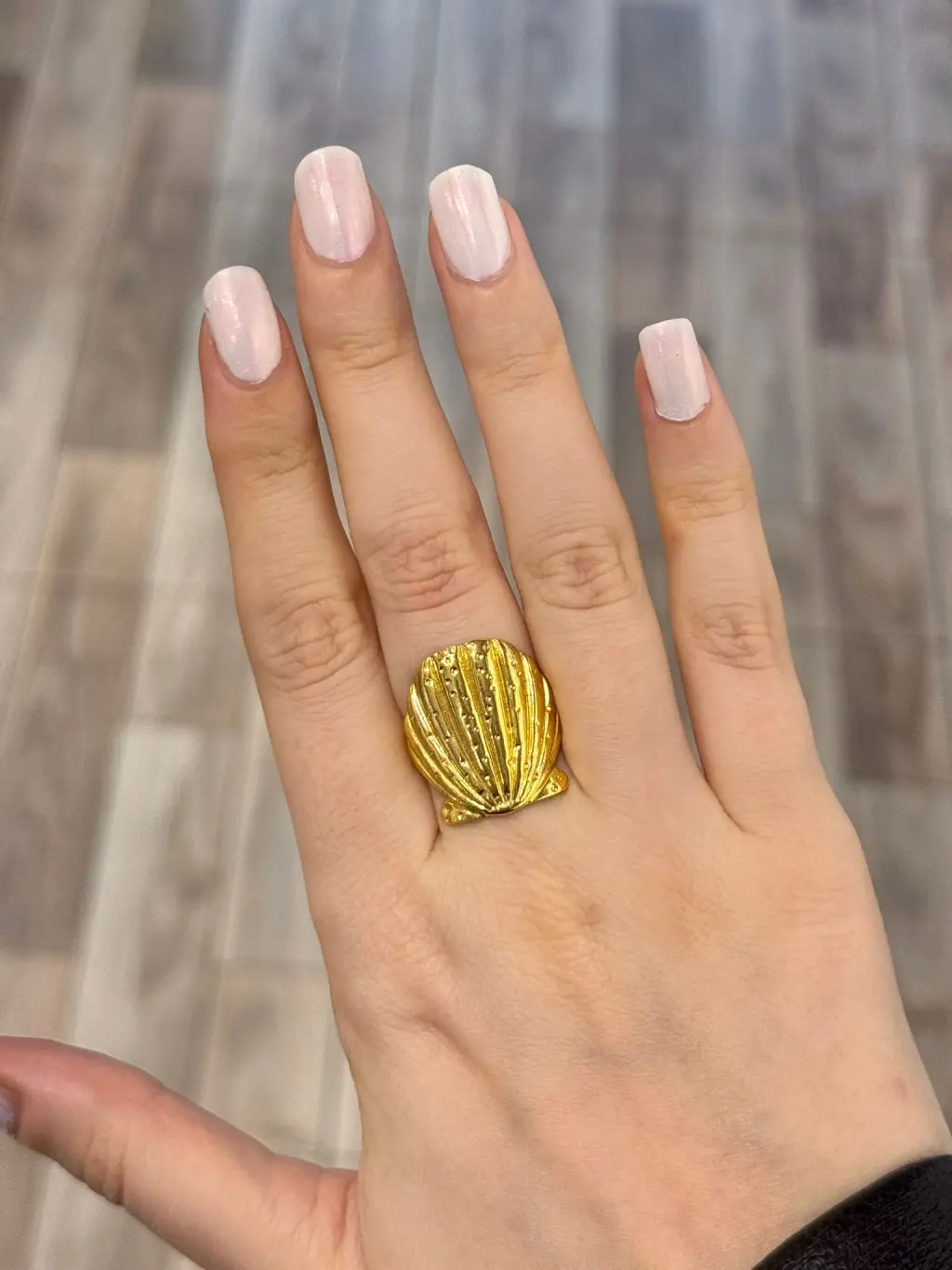 Midye İstiridye Deniz Kabuğu Altın Kaplama Çelik Kadın Yüzük