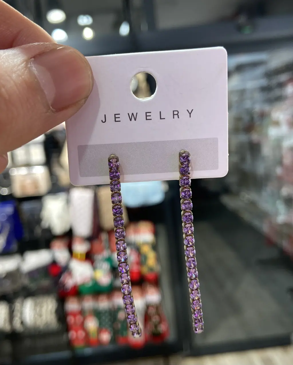 Mor Zirkon Taşlı İnce Su Yolu Küpe