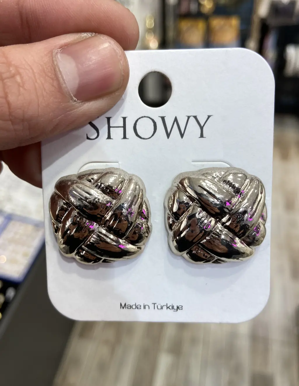 Örgü desenli detaylarıyla dikkat çeken bu küpeler, hem günlük hayatta hem de özel günlerde rahatlıkla kullanılabilir.